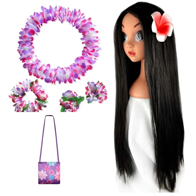 2025 Summer Moana Girl Cosplay Party Dress Children Princess Carnival Christmas Dress With Wig Neck...