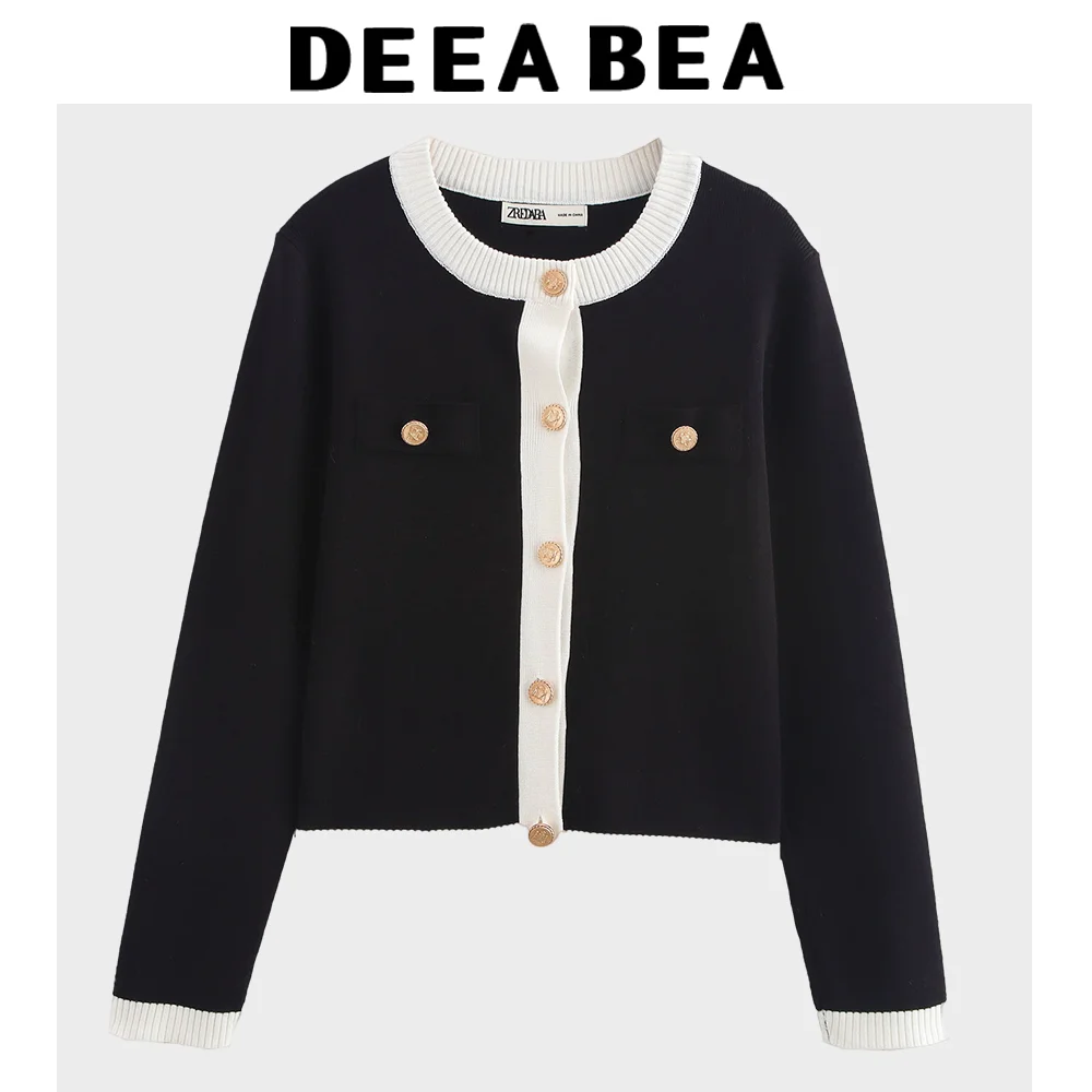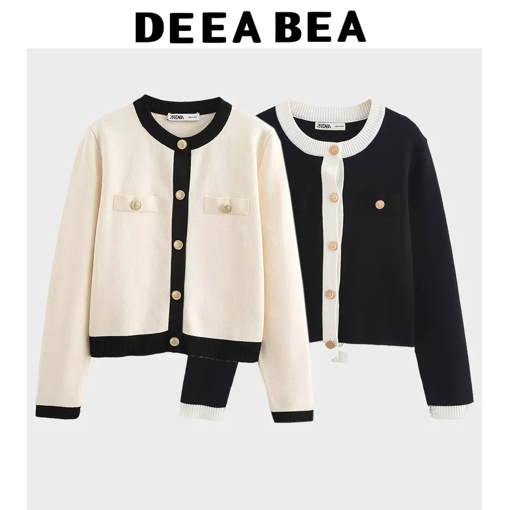 Foreign Trade Style Fashion Versatile Casual Two-color Gold Breasted Knitted Knitwear For Commuting And Leisure Sweet Cardigan