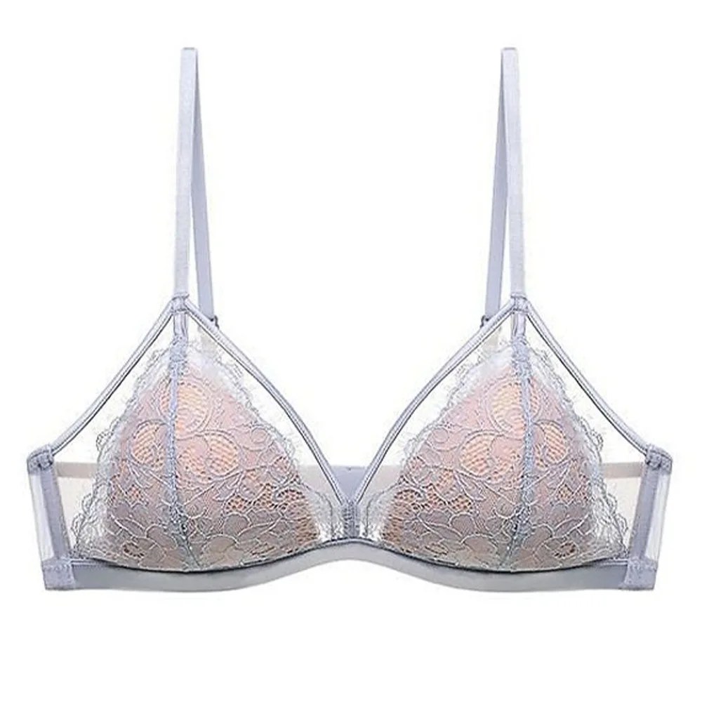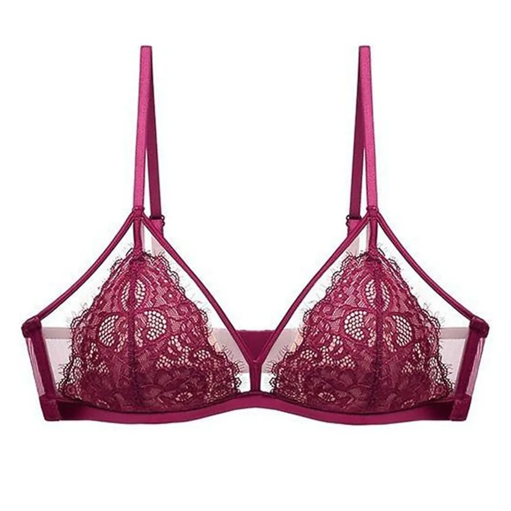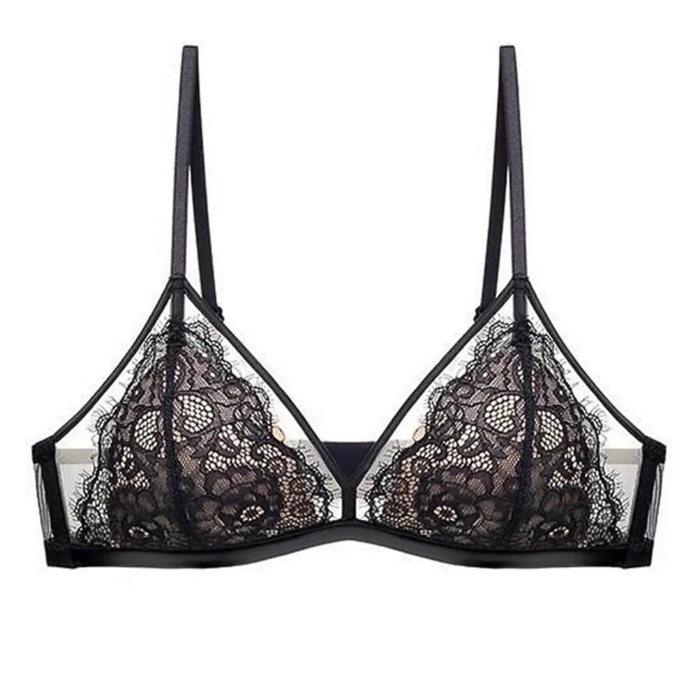 French Sexy Ultra-thin Triangular Cup Lingerie Without Steel Ring Women’s U-shaped Lace Beaut...