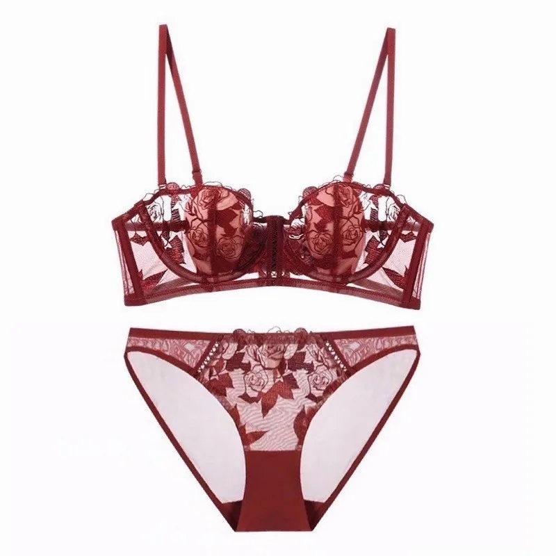 New Fashion Heavy Industry Embroidered Lingerie Set with Metal Buckle Women’s Sexy Perspectiv...