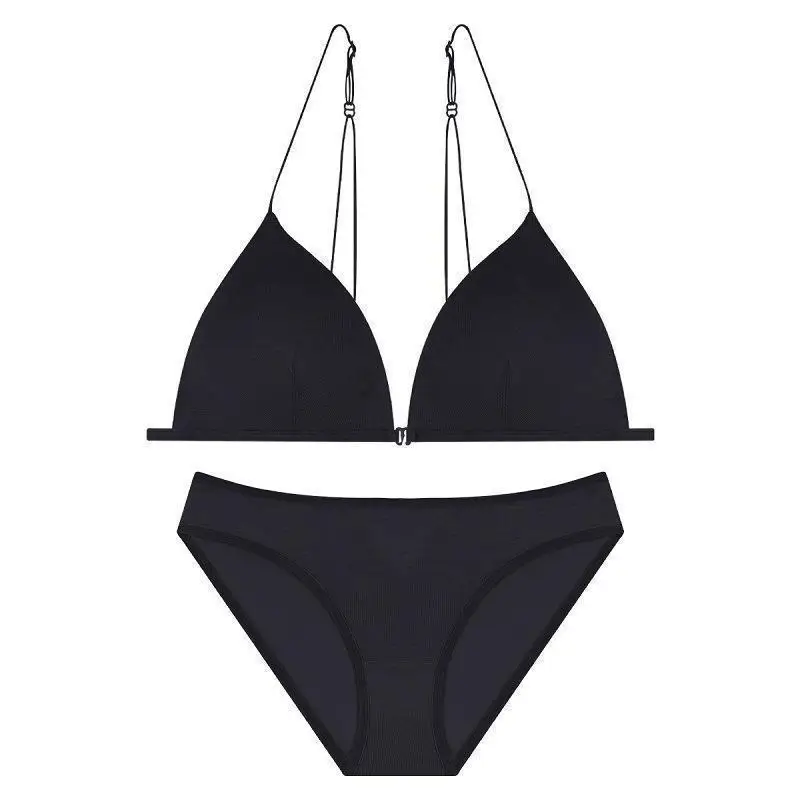 French Sexy Triangle Cup Lingerie Set Women Front Buckle Underwear Bra NO Steel Ring Thin Cotton Fine Shoulder Strap Beauty Back