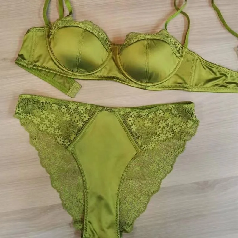 French Style Sexy Lace Lingerie Set Women’s Thin Satin Lace Patchwork Underwear Summer Sweet Elegant See Through Bra Everyday