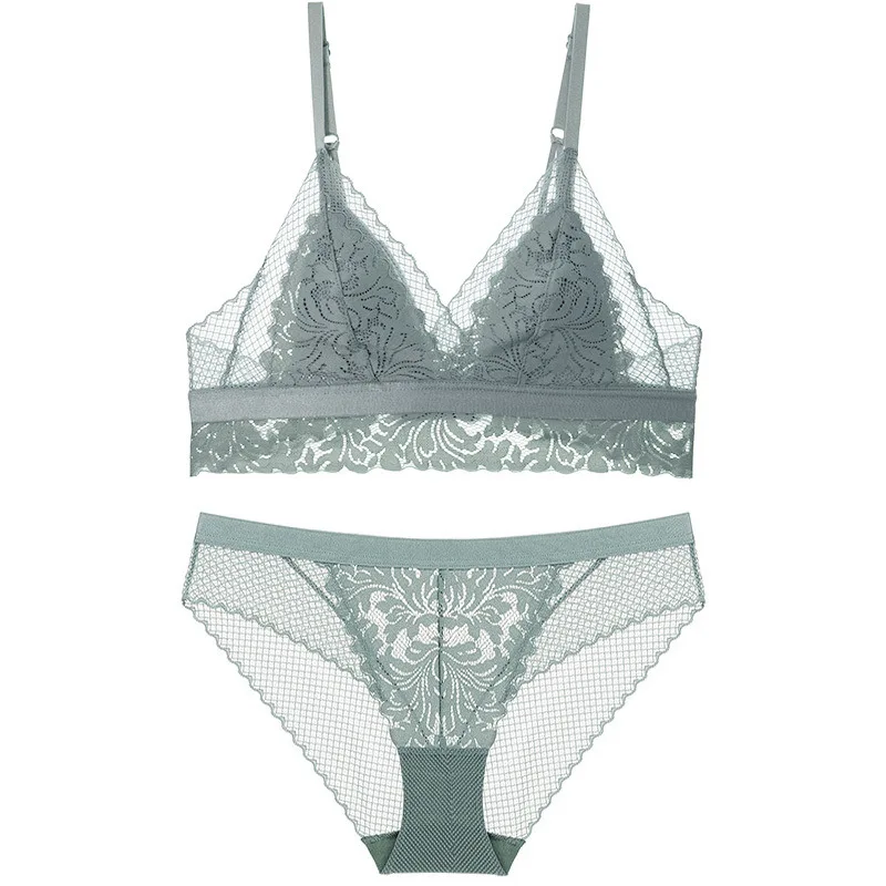 French Ultra-thin Steel Ring Free Bra Women Sexy Triangular Cup Comfortable Underwear Solid Breathable Lace Beauty Back Support