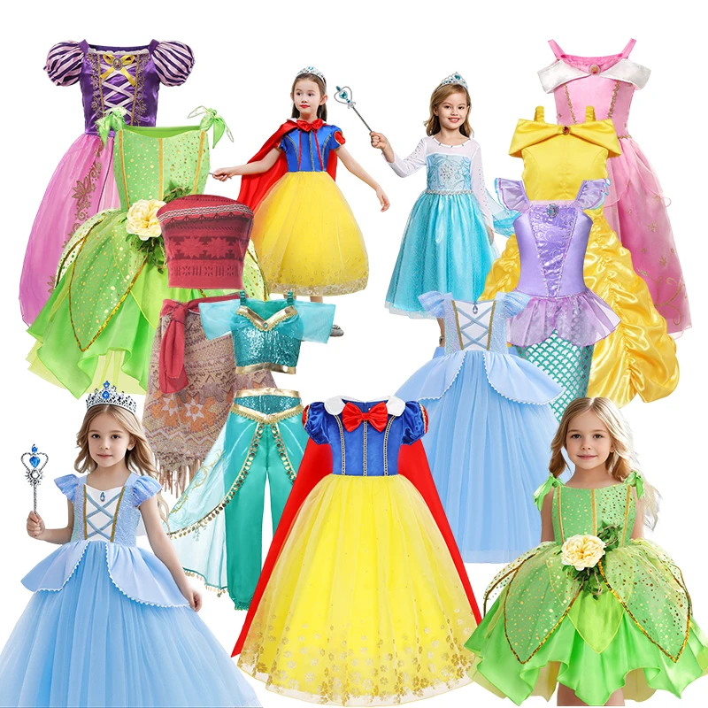 Girl Elsa Anna Cosplay Clothing Princess Aurora Belle Party 2-10T Girls Dress Carnival Halloween Jasmina Fancy Apparel 2025 New