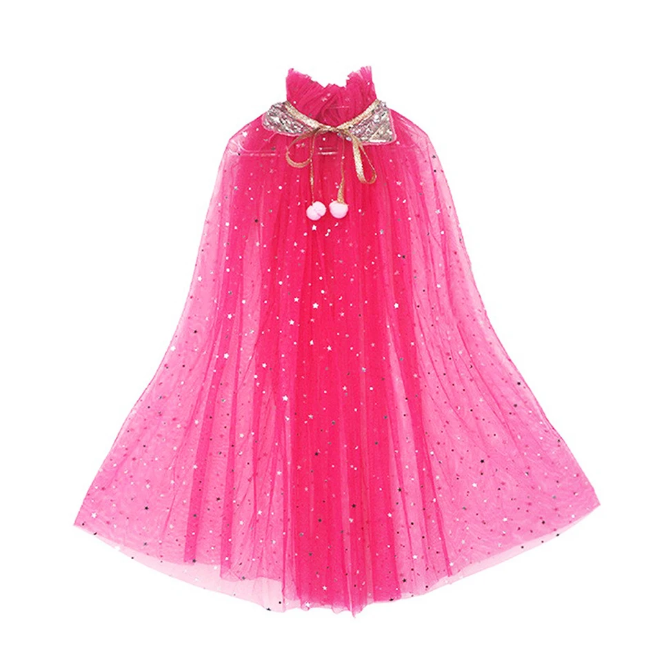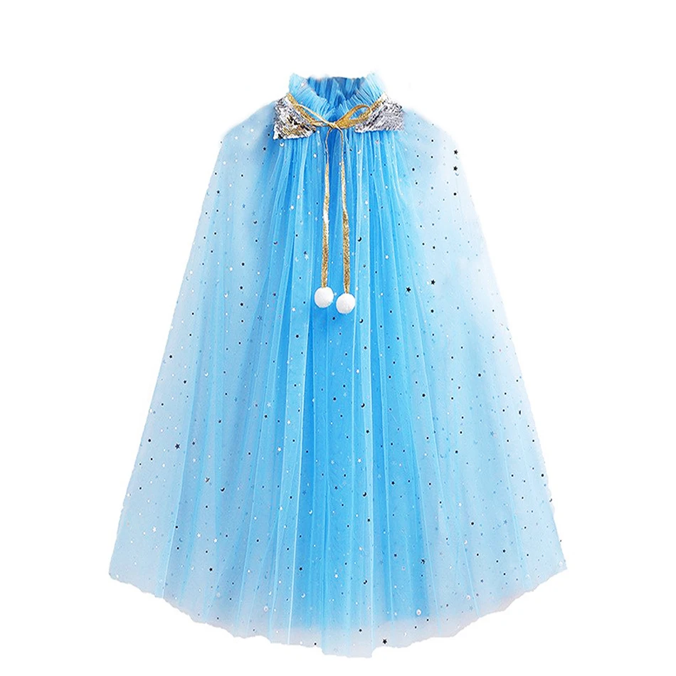 Girl Princess Party Accessories Cloak Elsa Costume Cape Rapunzel Aurora Sequins Tulle Halloween Mantle