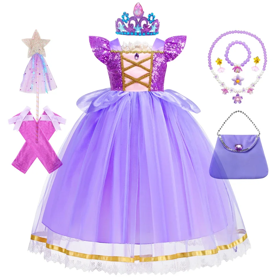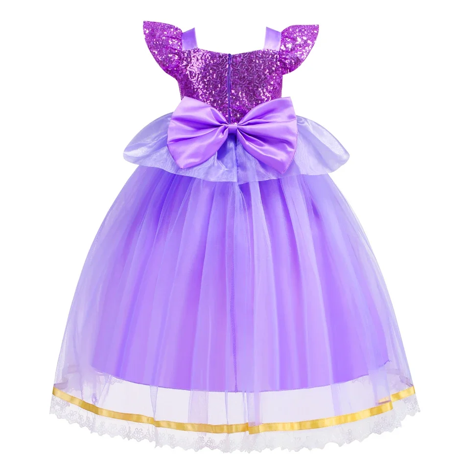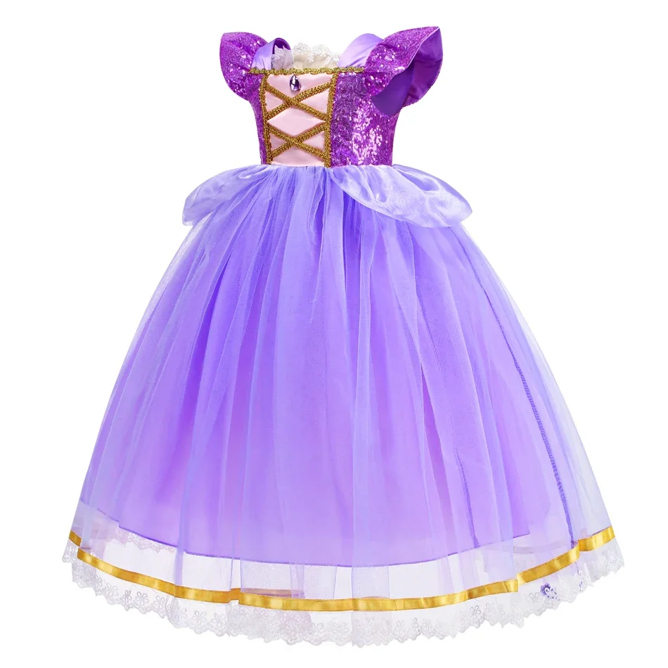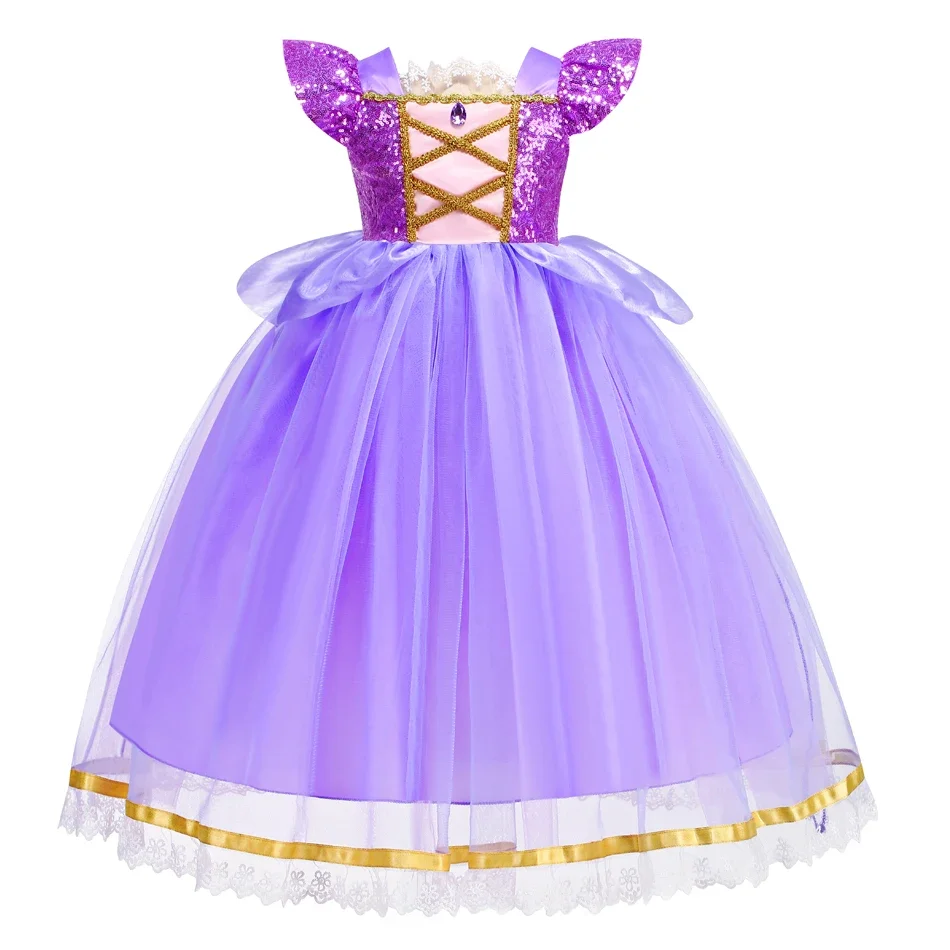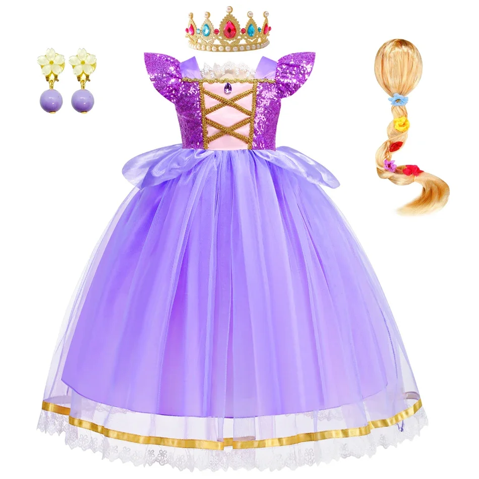 Girl Rapunzel Dress for Kids Halloween Princess Cosplay Costume for Birthday Party Gift Purple Sequins Mesh Clothing