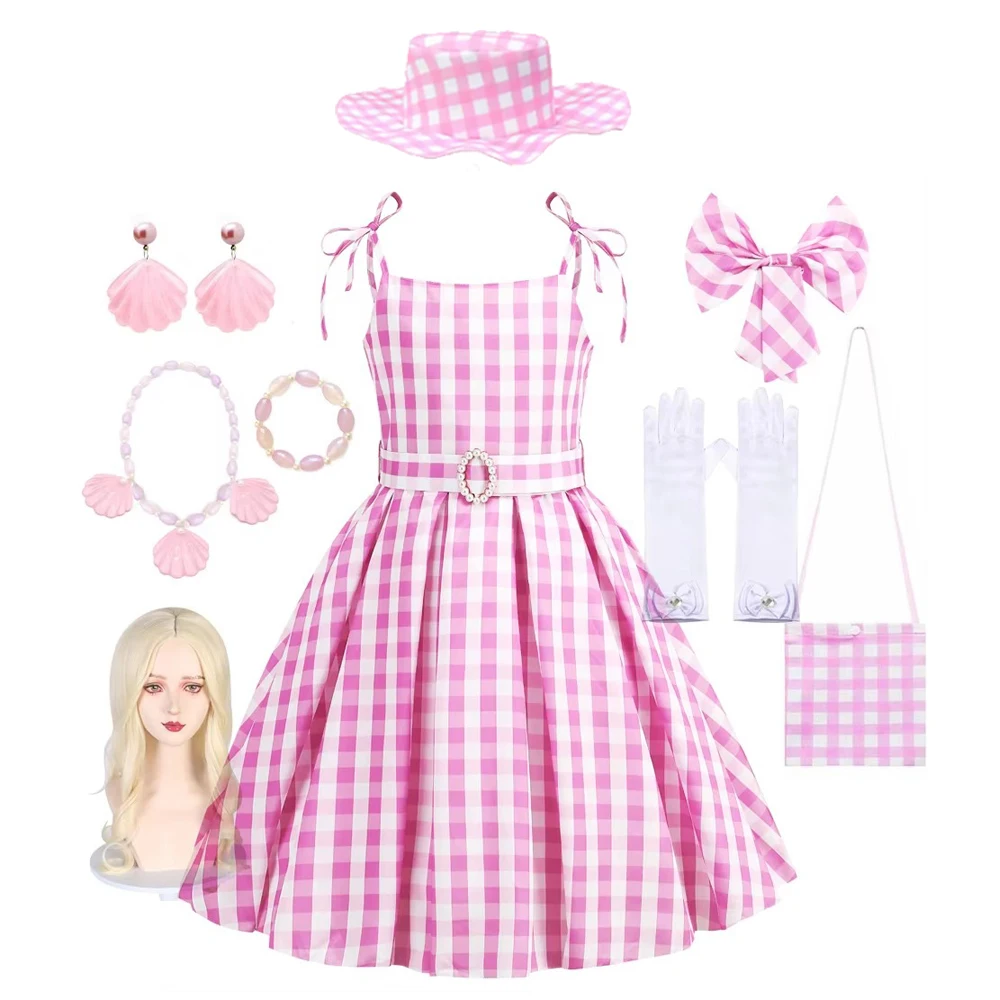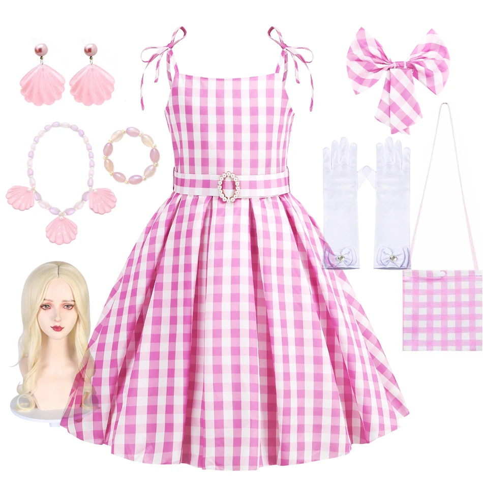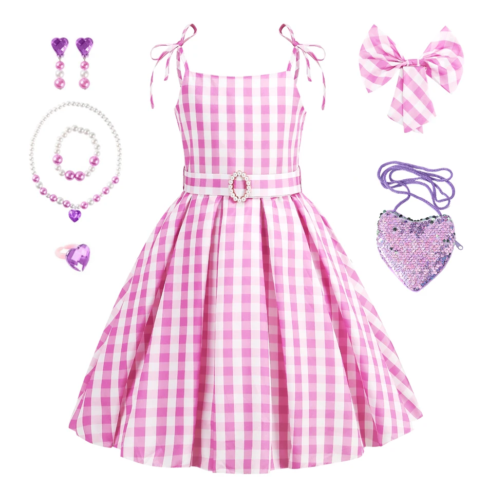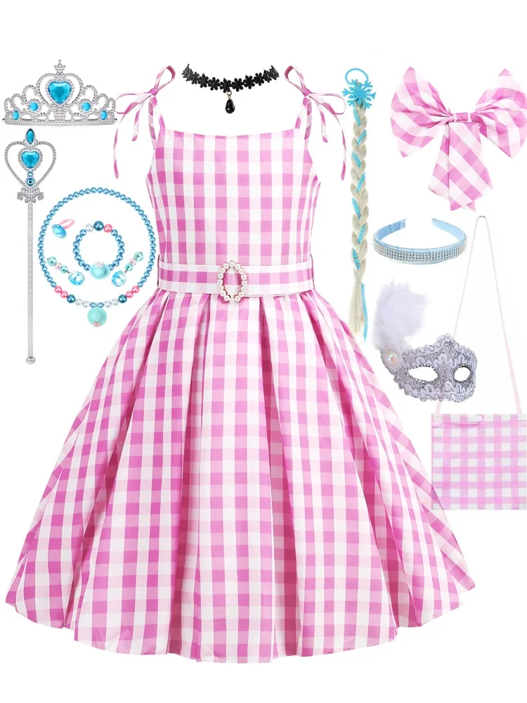 Girls Cosplay Summer Dress Children Pink Plaid Princess Costume Kids Birthday Party Outfits Fantasy Dresses