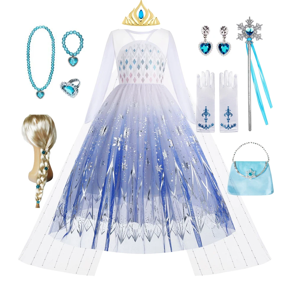 Princess Elsa Costume Dress For Children Girls Snow Queen Travel Costume Fancy Blue Long Sleeve Dre...