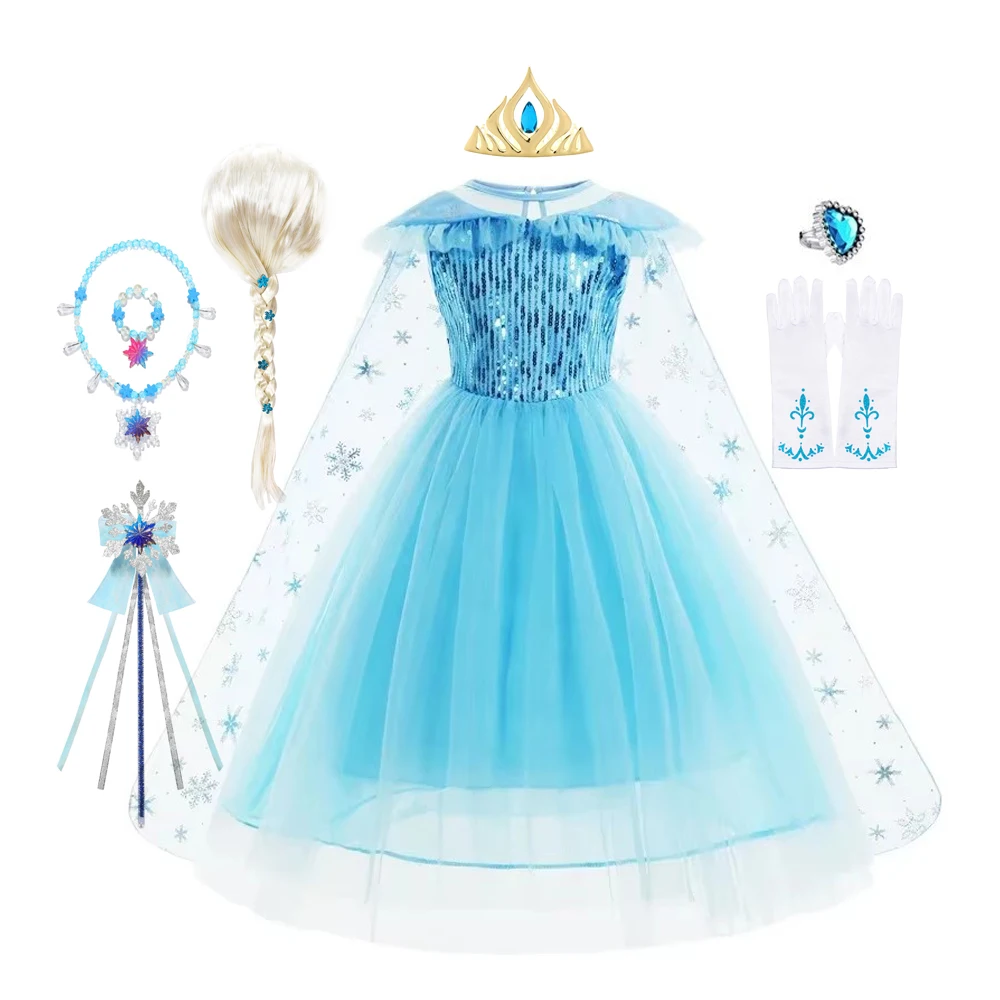 Girls Elsa Dress Kids Clothes Sequined Princess Costume with Cloak Children Snow Queen Halloween Birthday Cosplay Elsa Disfraz