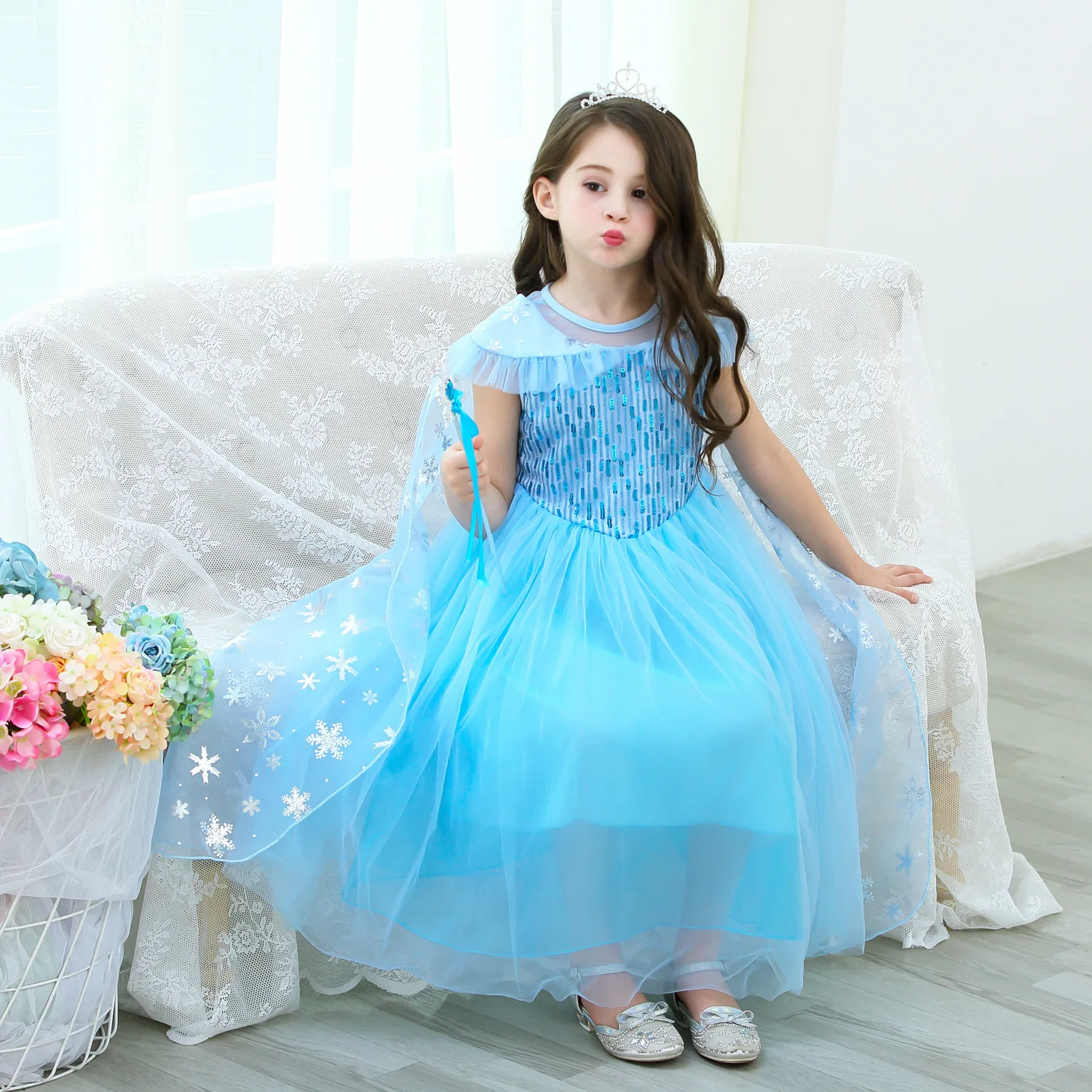 Girl Princess Party Accessories Cloak Elsa Costume Cape Rapunzel Aurora Sequins Tulle Halloween Man...