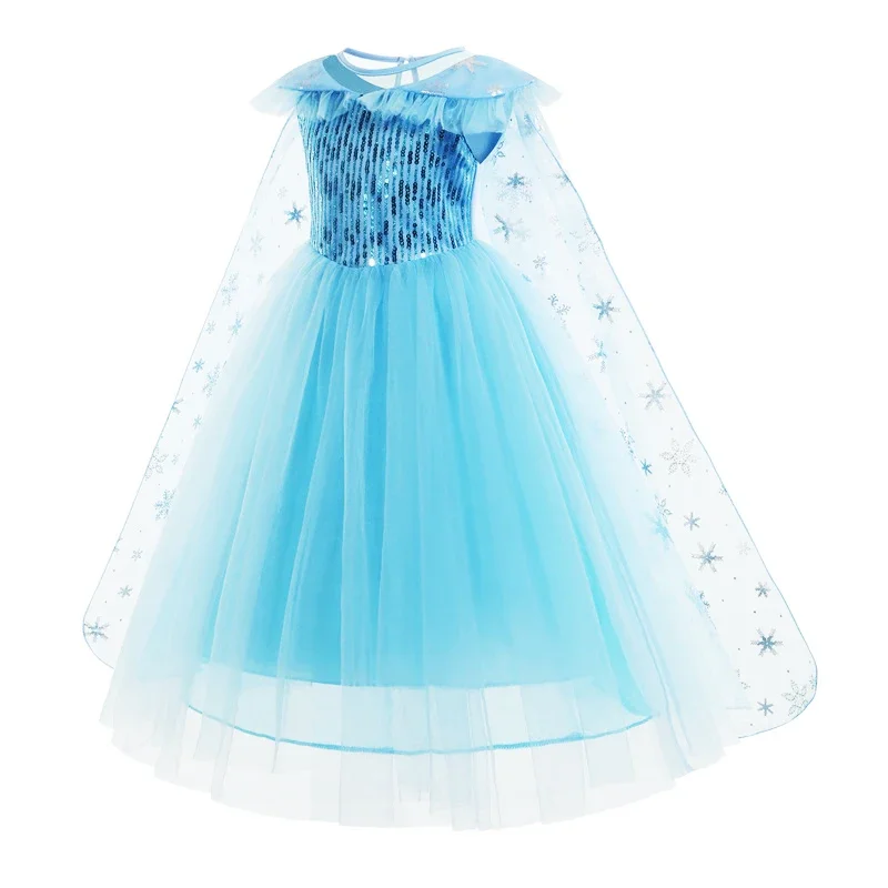 2-10Y Elsa Princess Dress For Kids 2025 Girls Blue Mesh Snowflake Costume Dress Carnival Birthday P...
