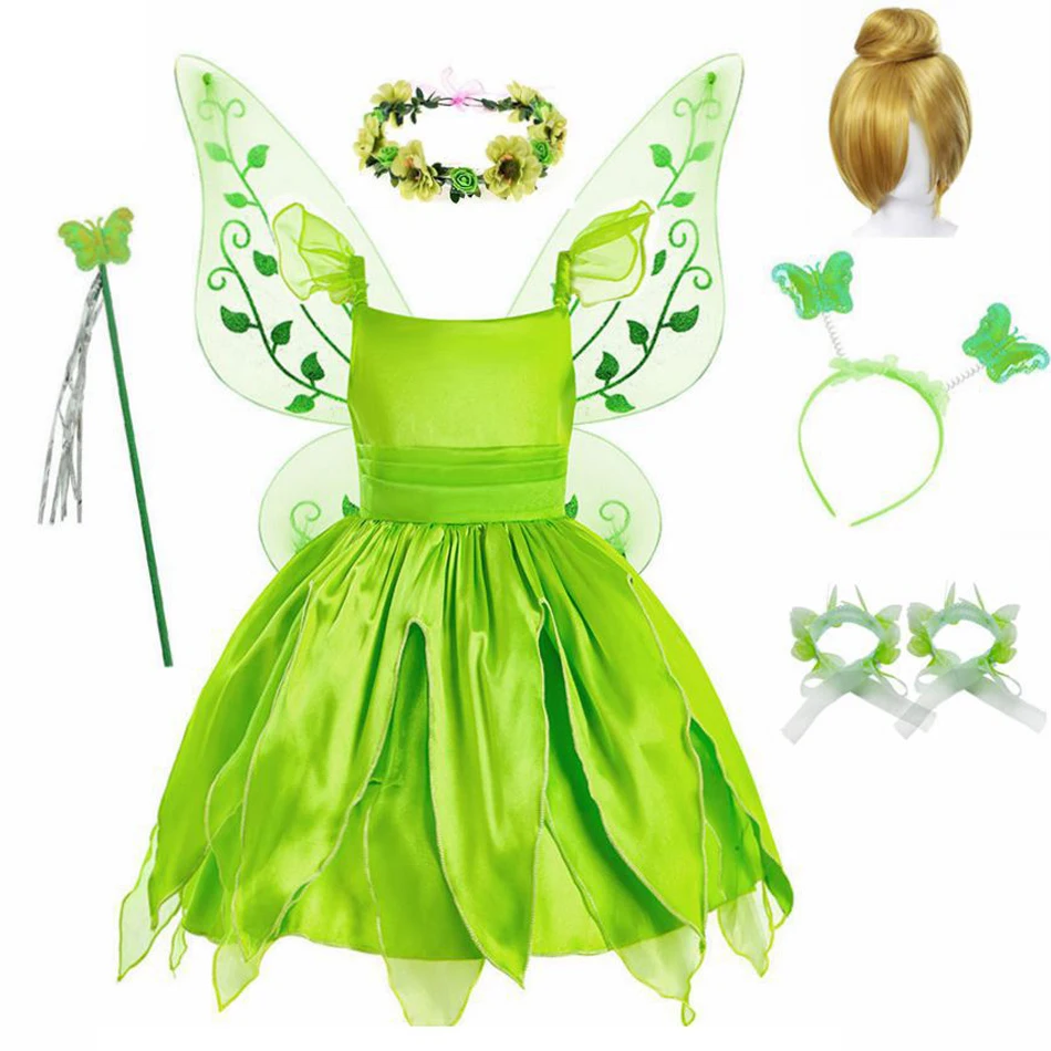 Girls Flower Fairy Dress Up Kids Princess Dress With Wings Halloween Princess Costume Elves Party Tinkerbell Tinker Bell Dress