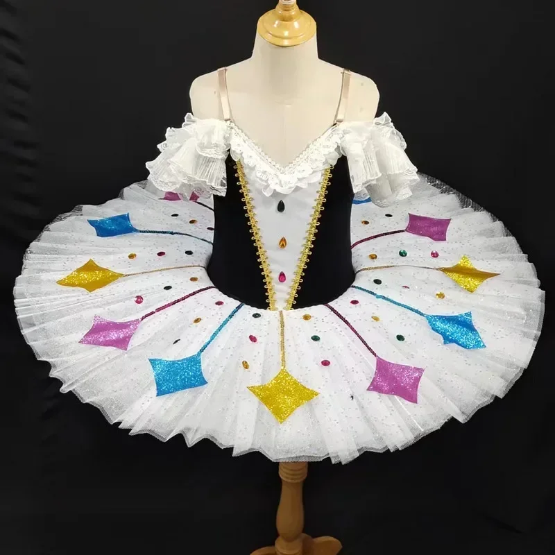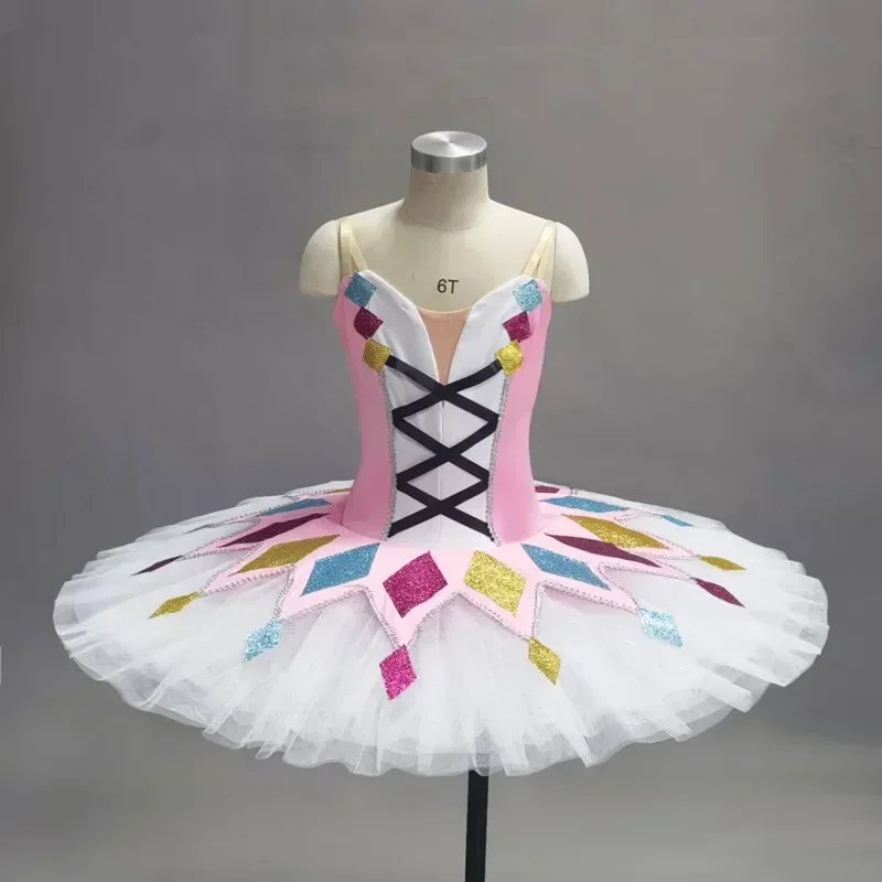 Girls Harlequinade Pancake Tutu Ballerina Party Dress Adult Child Kids Ballet Dance Costume With Hoop Professional Ballet Tutu