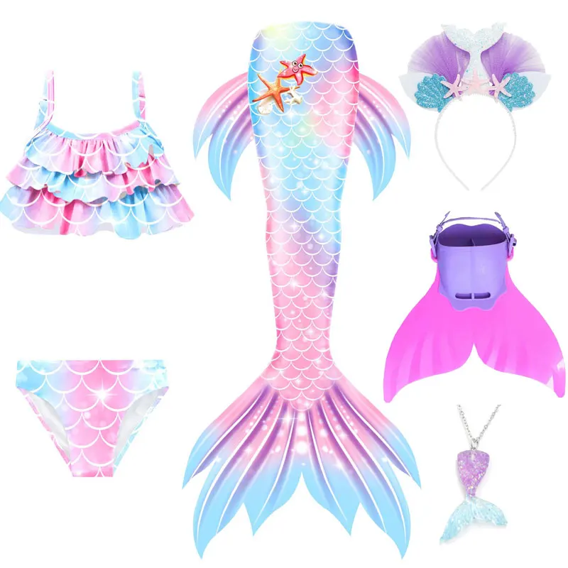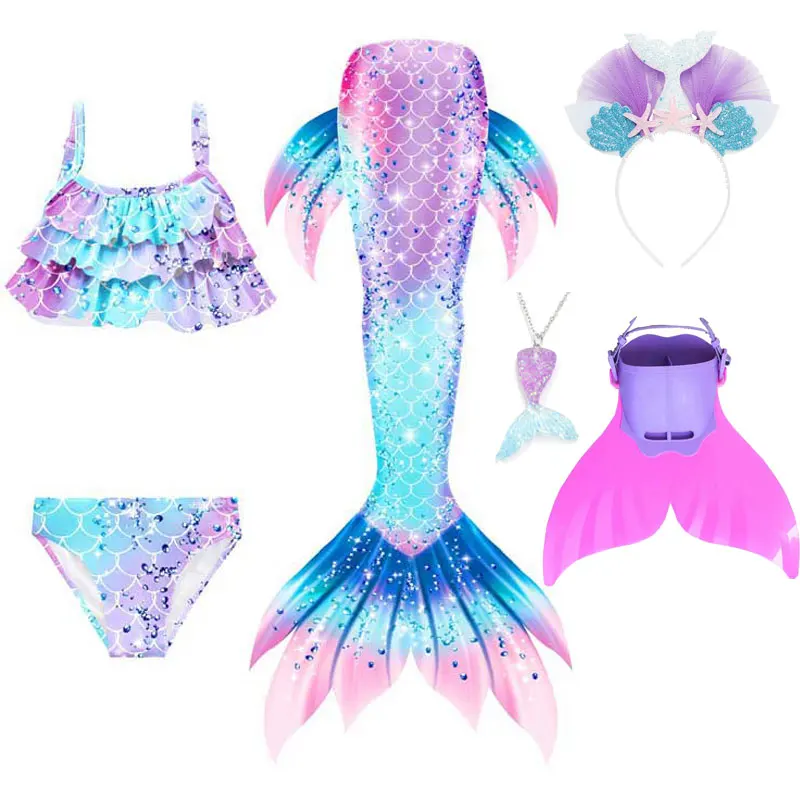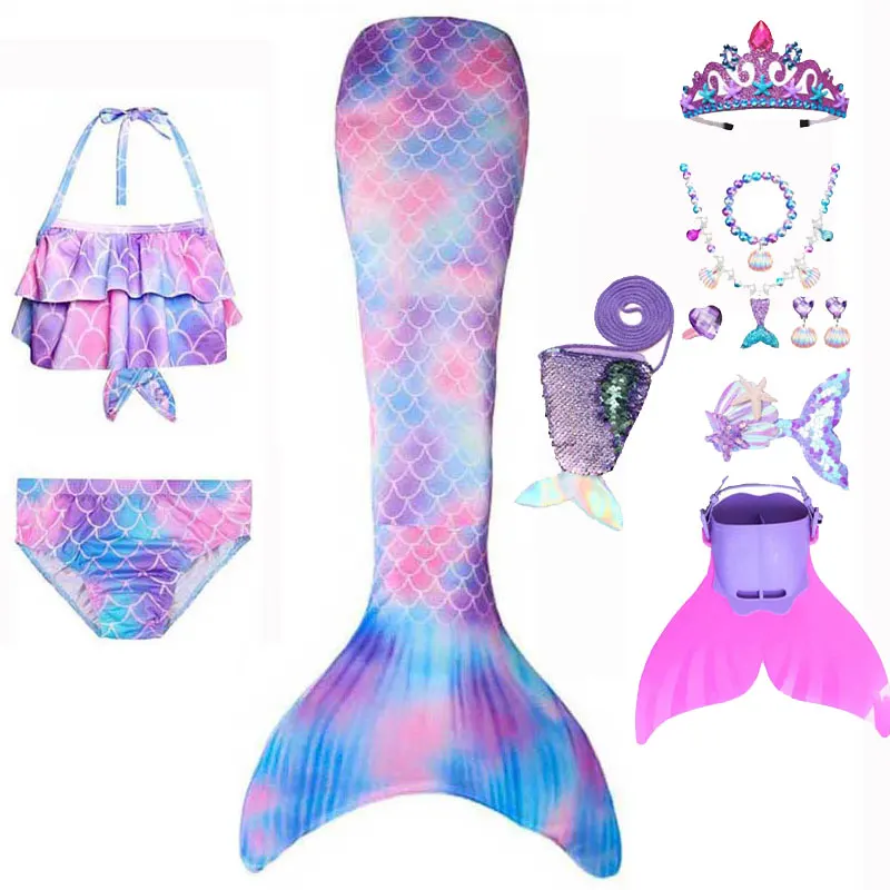 Mermaid Cosplay Costume For Girls Swimming Mermaid Tail Swimsuit Monofin Plait Hairpin Necklace Hal...
