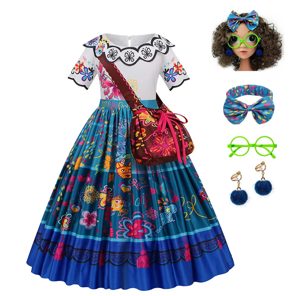 Girls Princess Costume Children Encanto Halloween Swing Flared Clothes Kids Printed Mirabel Cartoon Fantasy Cosplay Dress 3-12Y