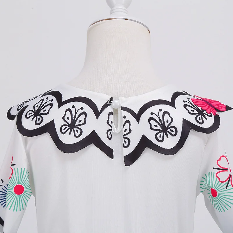 Polka Dot Vintage Kids Cotton Dress Flower Floral Midi Summer Dress Baby Girl