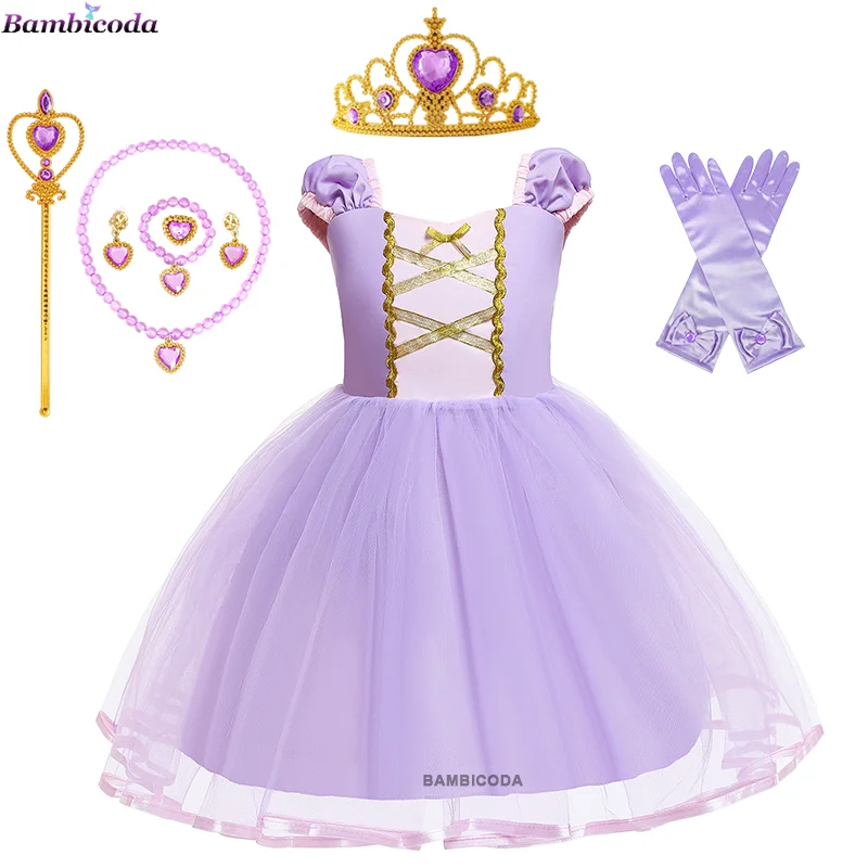 Girls Rapunzel Dress Cinderella Cosplay Costume Kids Clothes Princess Dress Crown Gloves Birthday Party Ball Gown baby Costume