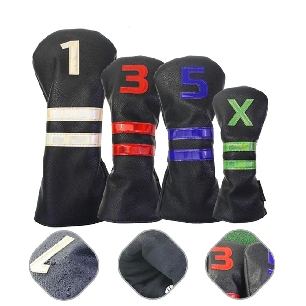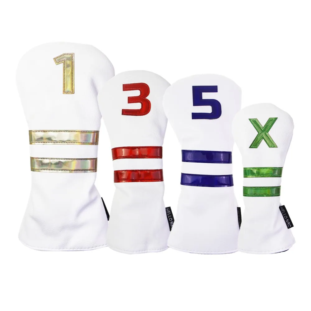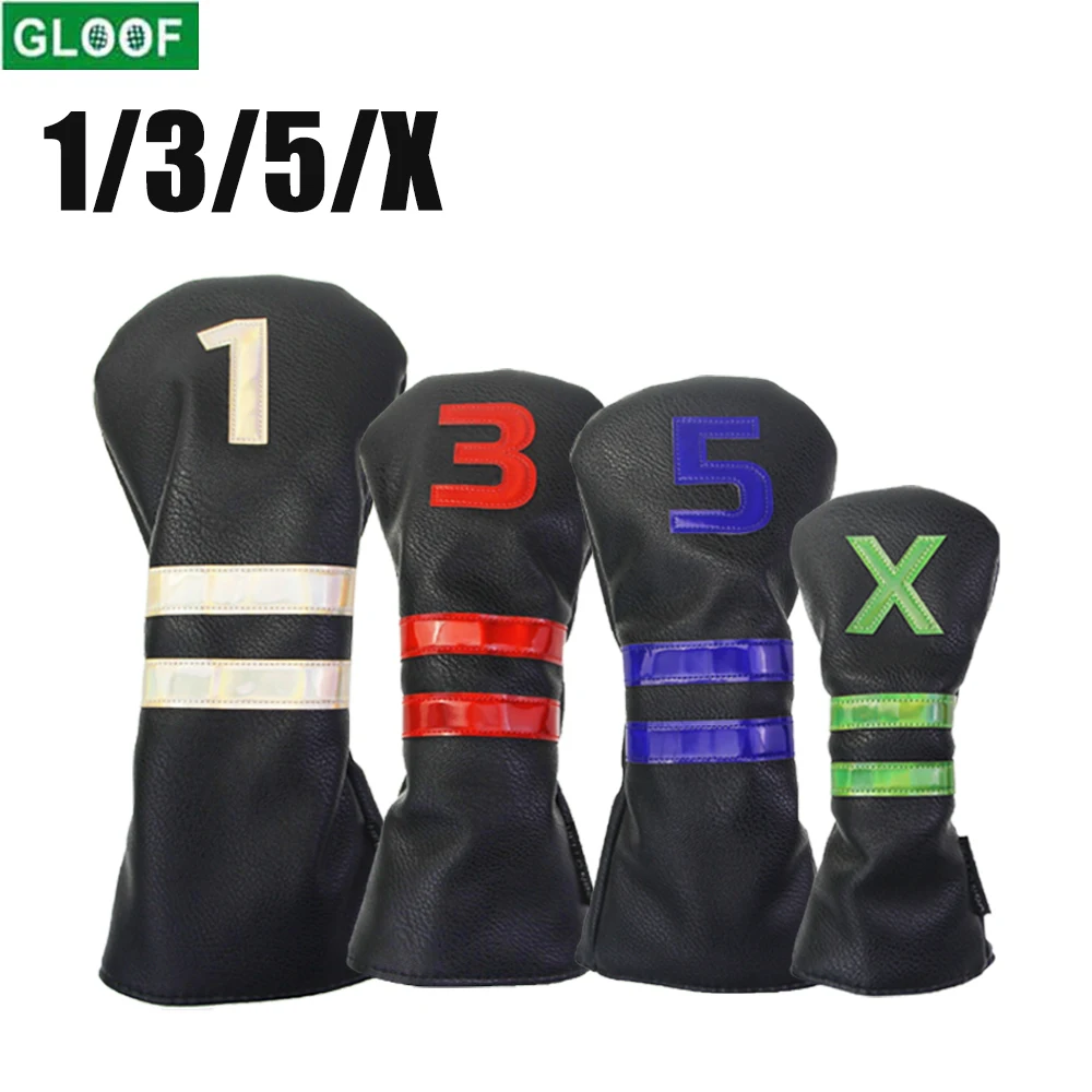 GLOOF 1 3 5 X Golf iron Head Covers PU Leather Stripes Driver Fairway Wood Hybrid Head Cover Synthetic Leather with Embroidery