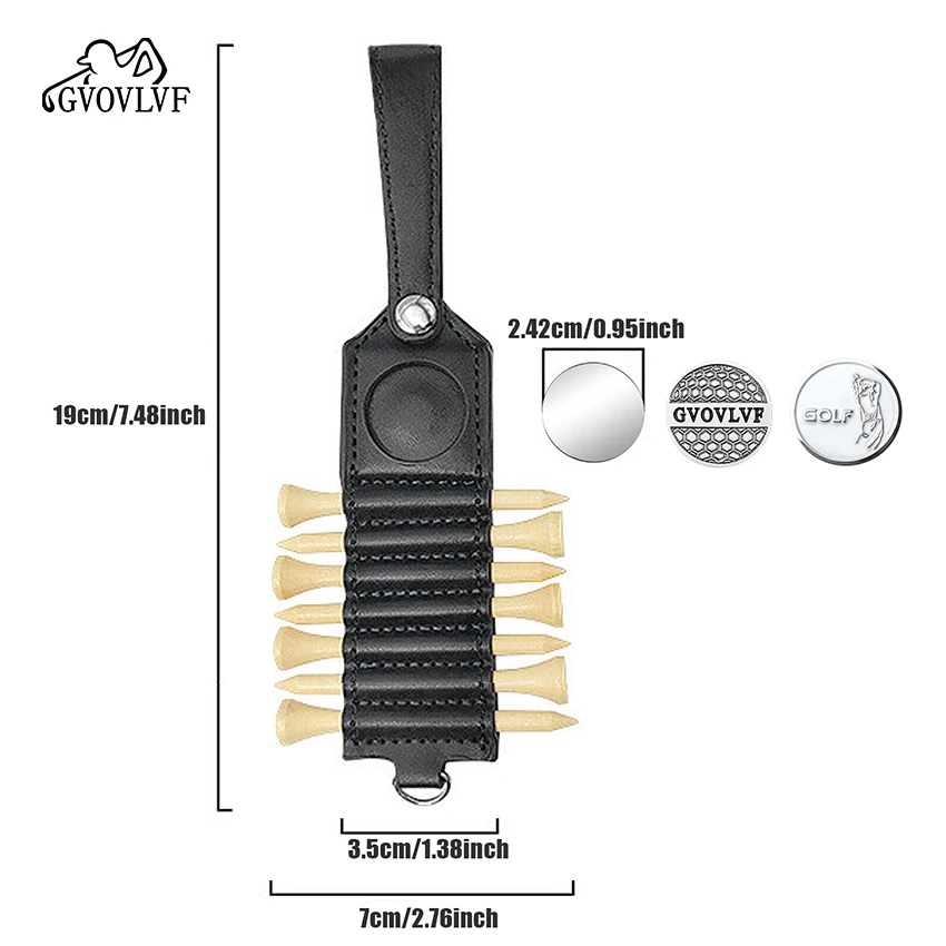 Golf Tee Holder Leather Golf Tee Pouch Bag Golf Case Golf Accessory for Golfers Pouch with Marker and 70mm tees Gift for Golfers