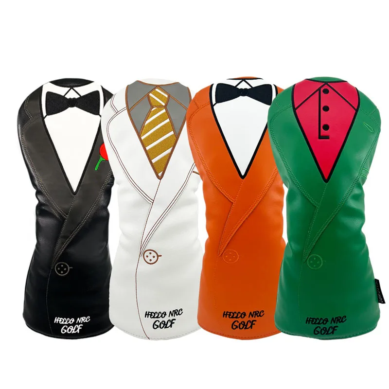 Golf Wood Head Cover PU Leather Suit Style Waterproof For Driver Fairway Hybrid Golf Headcovers With Number Golf Accessories