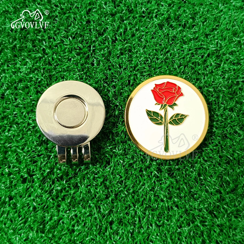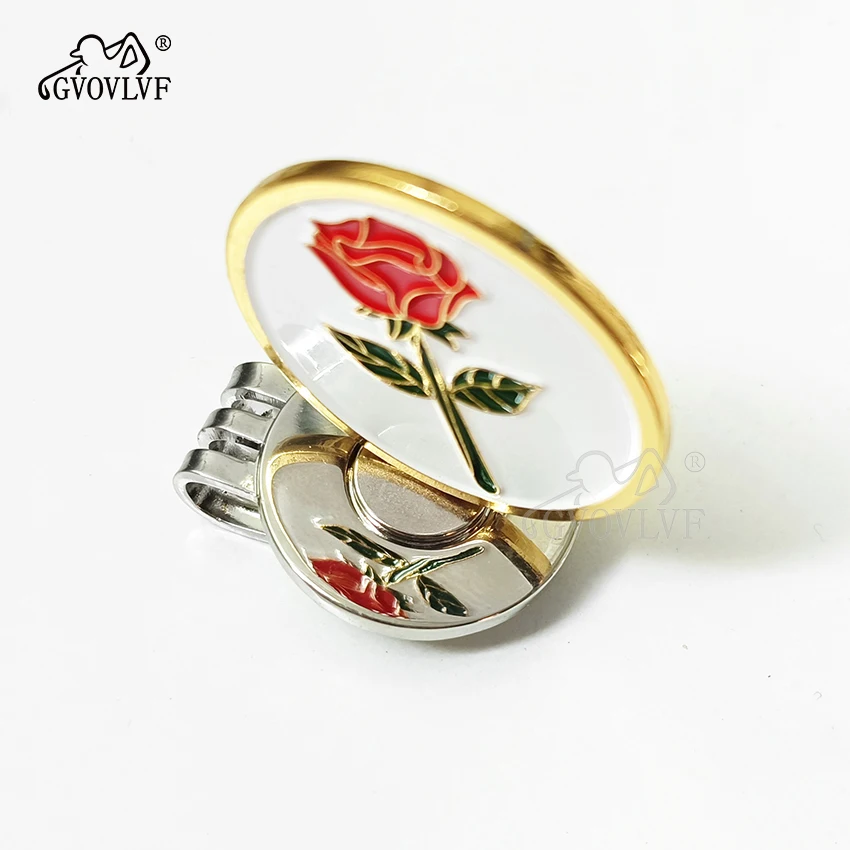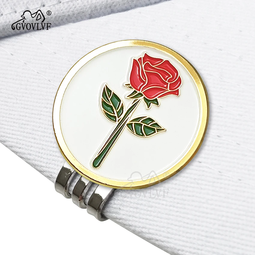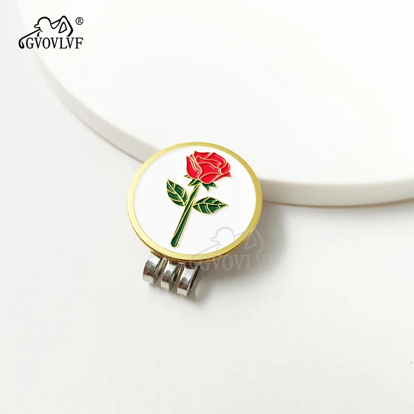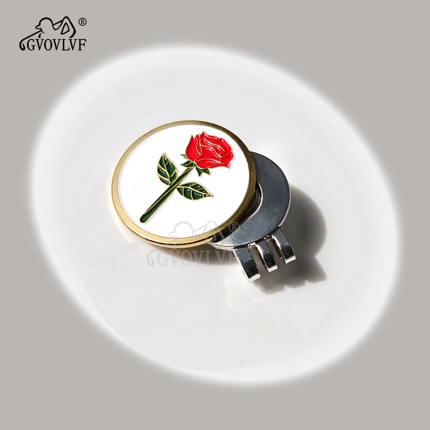 GVOVLVF 1pc Golf Ball Markers Golf Rose Pattern Golf Hat Clip Cartoon Shape Magnetic Golf Ball Marker Golf Accessory Gift