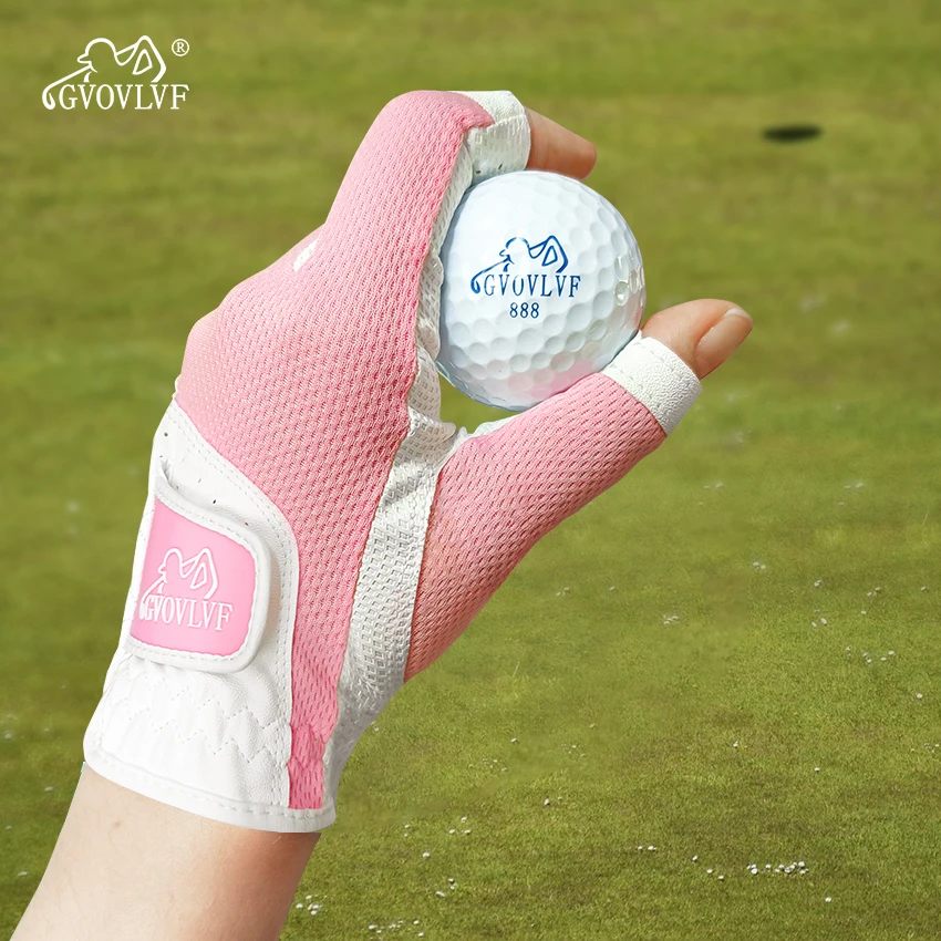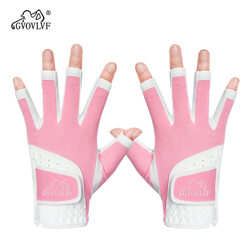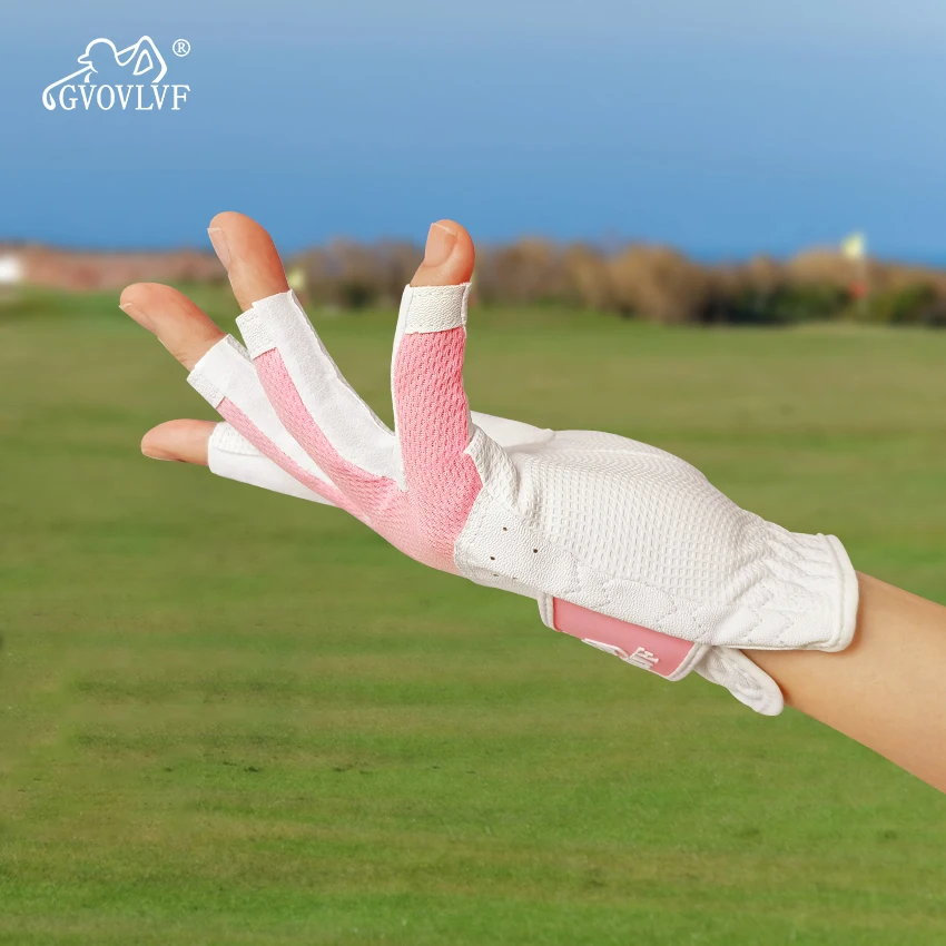 GVOVLVF1 Pair Golf Gloves for Women Half 1/3 Finger Soft Leather Breathable Extra Grip Accessories Fit Ladies Girls Sport