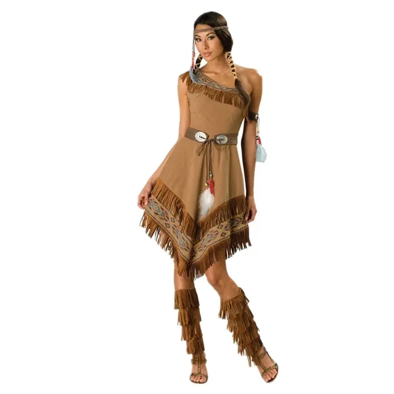 Halloween Native Indians Princess Goddess Cosplay Costume Tassel Indian Tribal Stage Performance Dance Dress