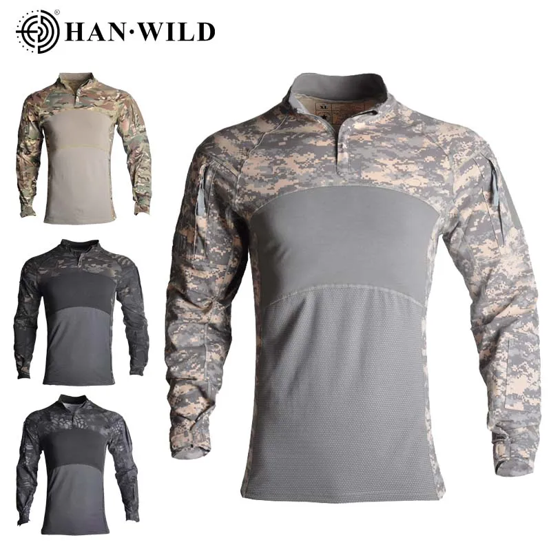 HAN WILD Outdoor Combat Shirt Men Clothing Camo Tactical Suit Hunting Clothes Hiking Airsoft Sniper Fishing Shirt