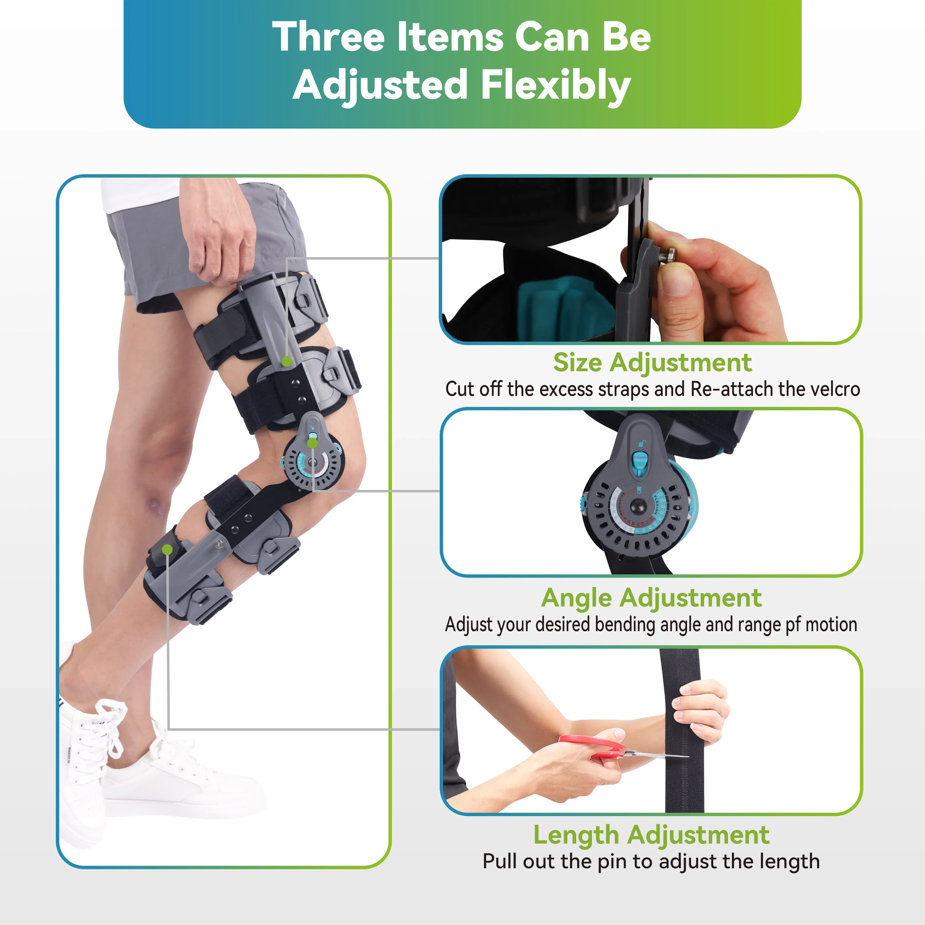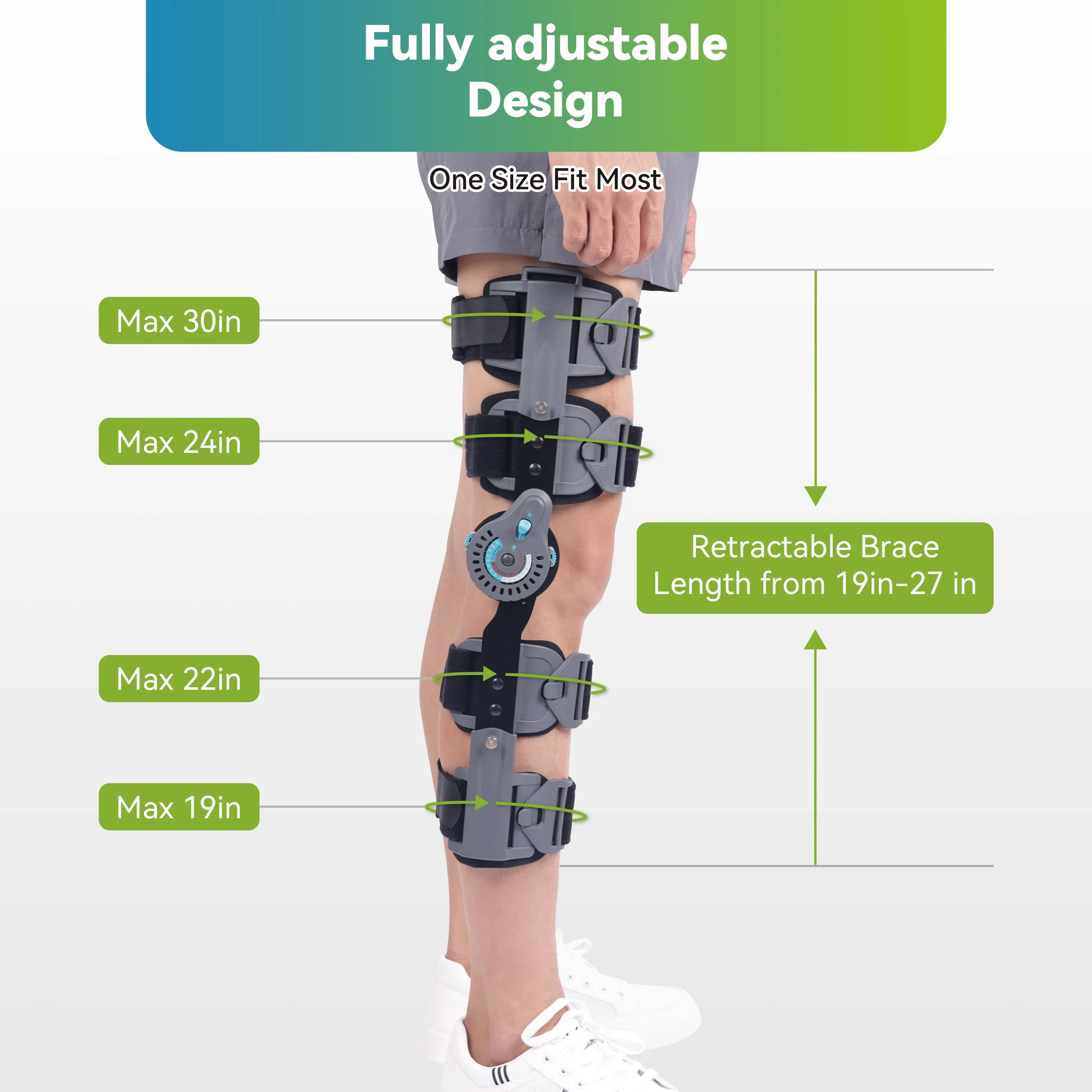 The length of the brace can be adjusted within the range of 19-24.5 Inch as required. Fully adjustable, easily apply on and take off by feature quick-release buckles.