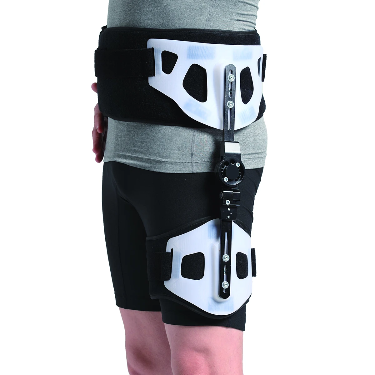 The universal designed hip abduction brace is suitable for the left/right leg. Hip brace can be maintained in an appropriate hip joint position and can be adjusted on multiple body planes, effectively relieving sciatica, stabilizing, aligning, and reinforcing the hip joint. Easy of adjustment, Dual joints for hip flexion and induction control.