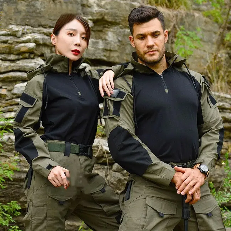 Hooded Collar Shirt Camo Combat T-Shirt Men Tactical Shirts Airsoft Paintball Camping Hunting Clothing Wear-resisting