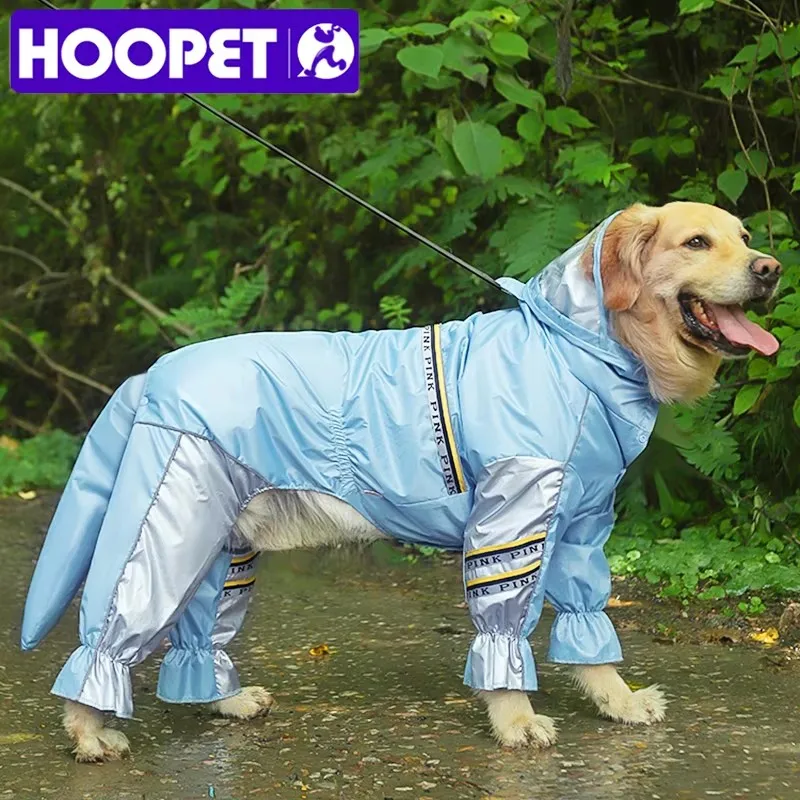 HOOPET Big Dog Raincoat with Tail Jumpsuit Raincoat for Large Dogs with Reflective Strips Tow Hole Labrador Waterproof Jacket