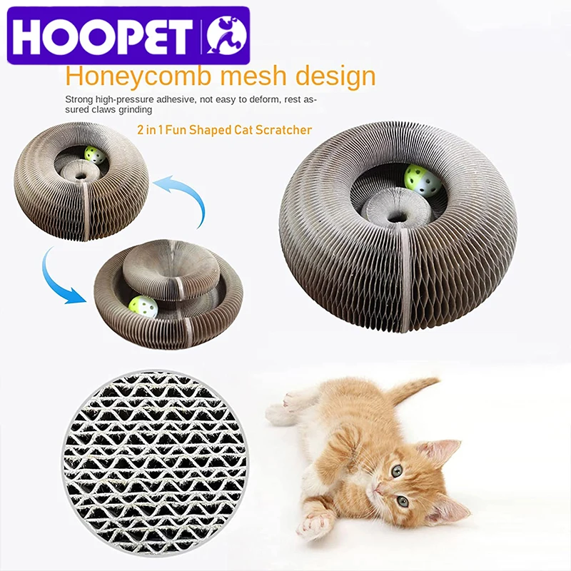 HOOPET Cat Toy with Bell Ball Magic Organ Cat Scratch Board Foldable Scratch Board for Cats Kitten Round Shape Folding Corrugate