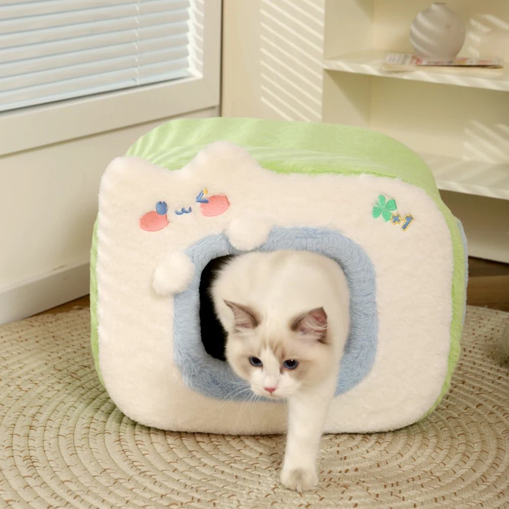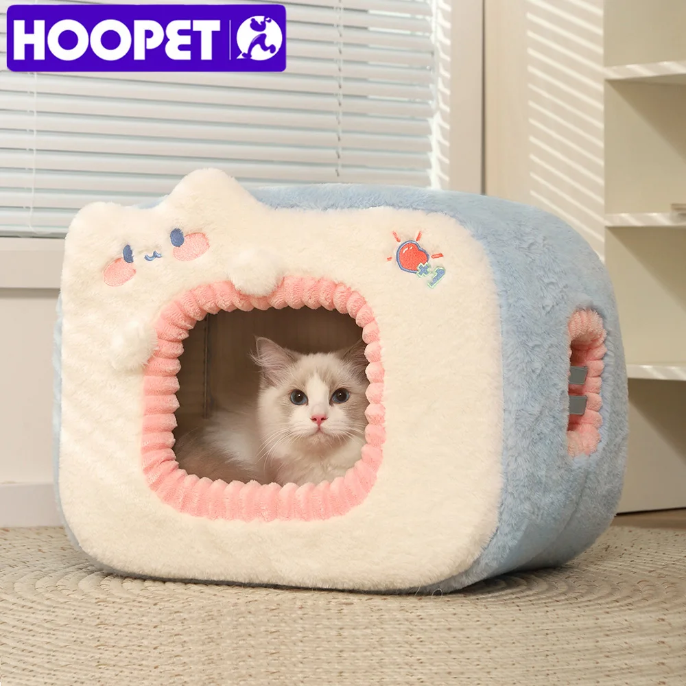HOOPET Cute Cat Bed Warm Pet House Kitten Cave Cushion Comfort Cat House Tent Puppy Nest Small Dog Mat Supplies Bed for Cats