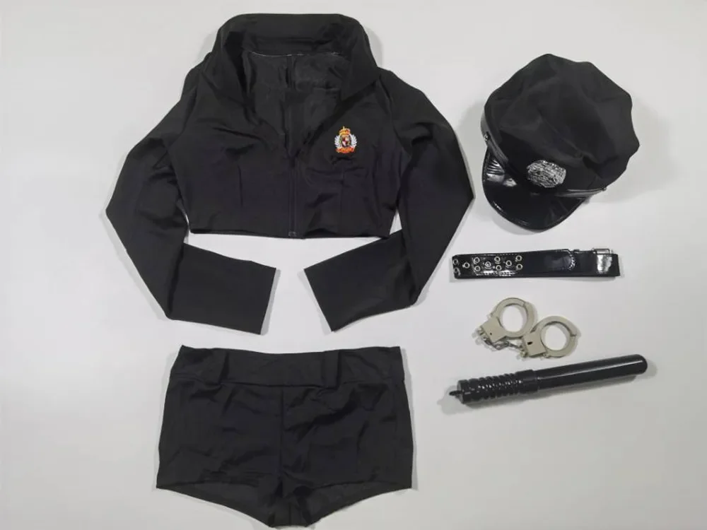 Black 1/Set : Top + Shorts + Hat + Belt + Baton + Handcuff