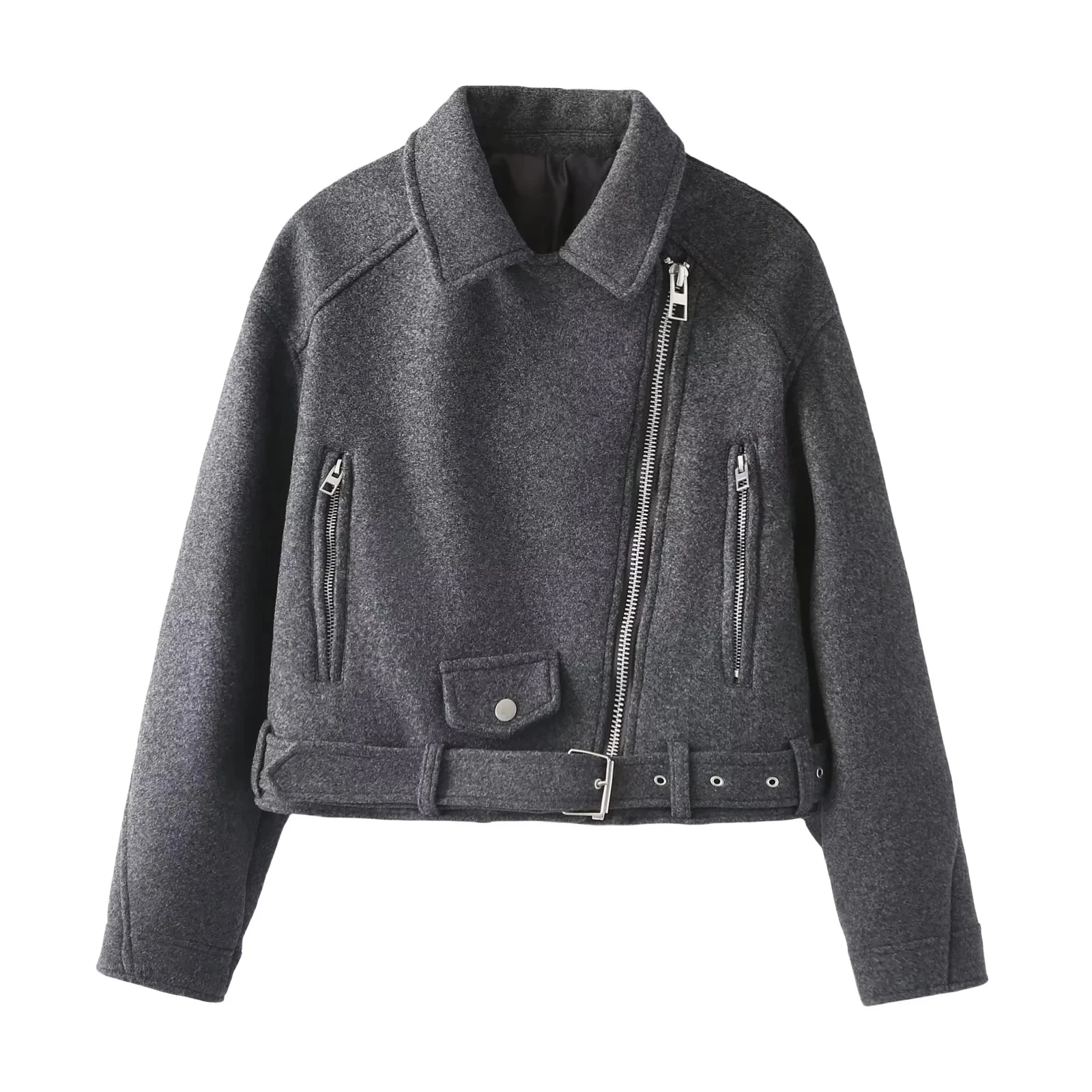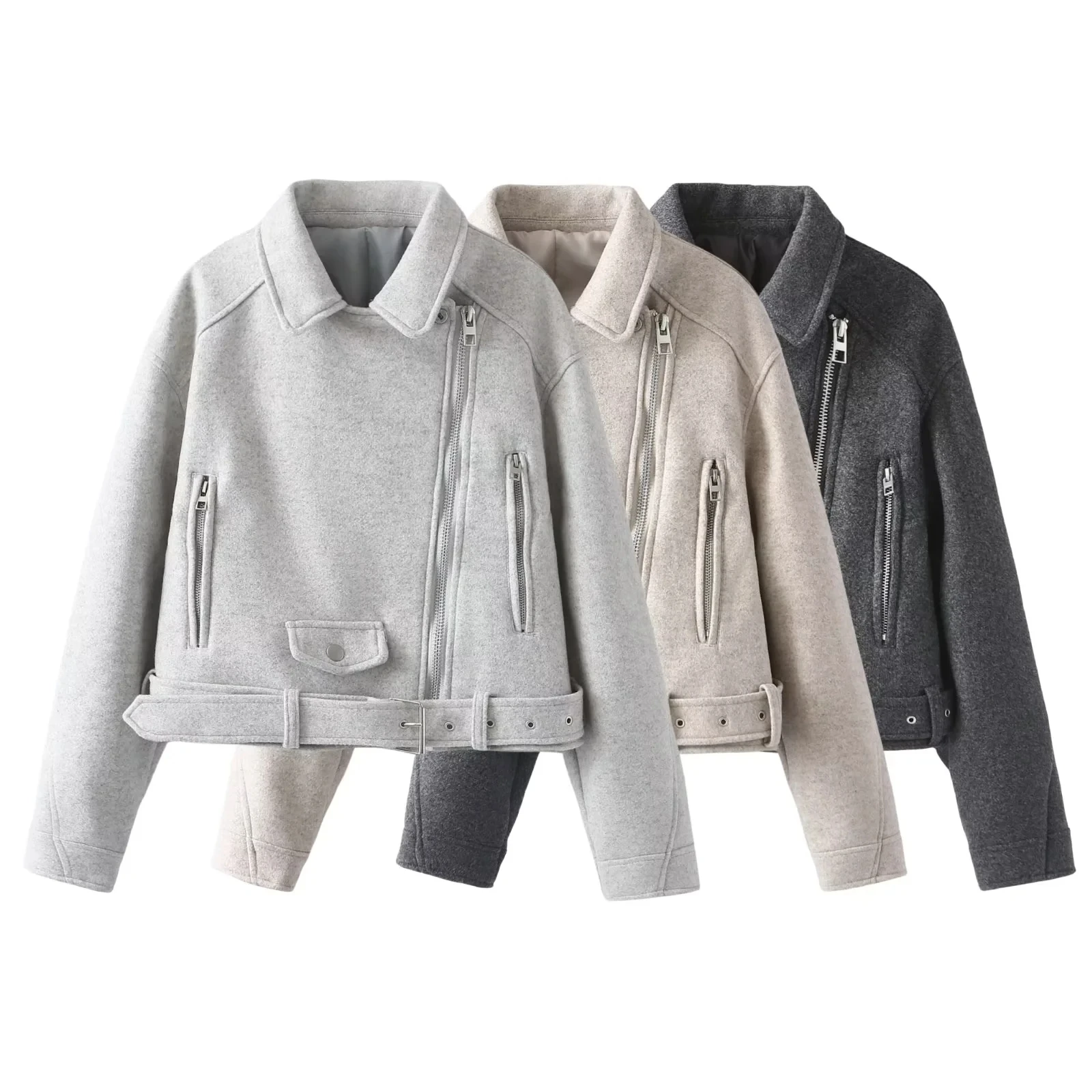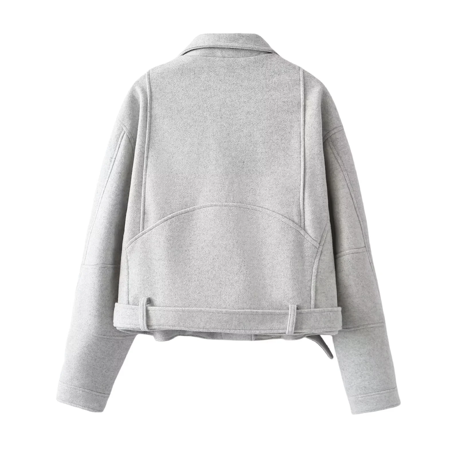 Jackets Women’s Coat Gray Jaqueta Feminina With Belt Long Sleeve Outwear Streetwear Fashion 2024 Veste en Laine pour Femme Coat