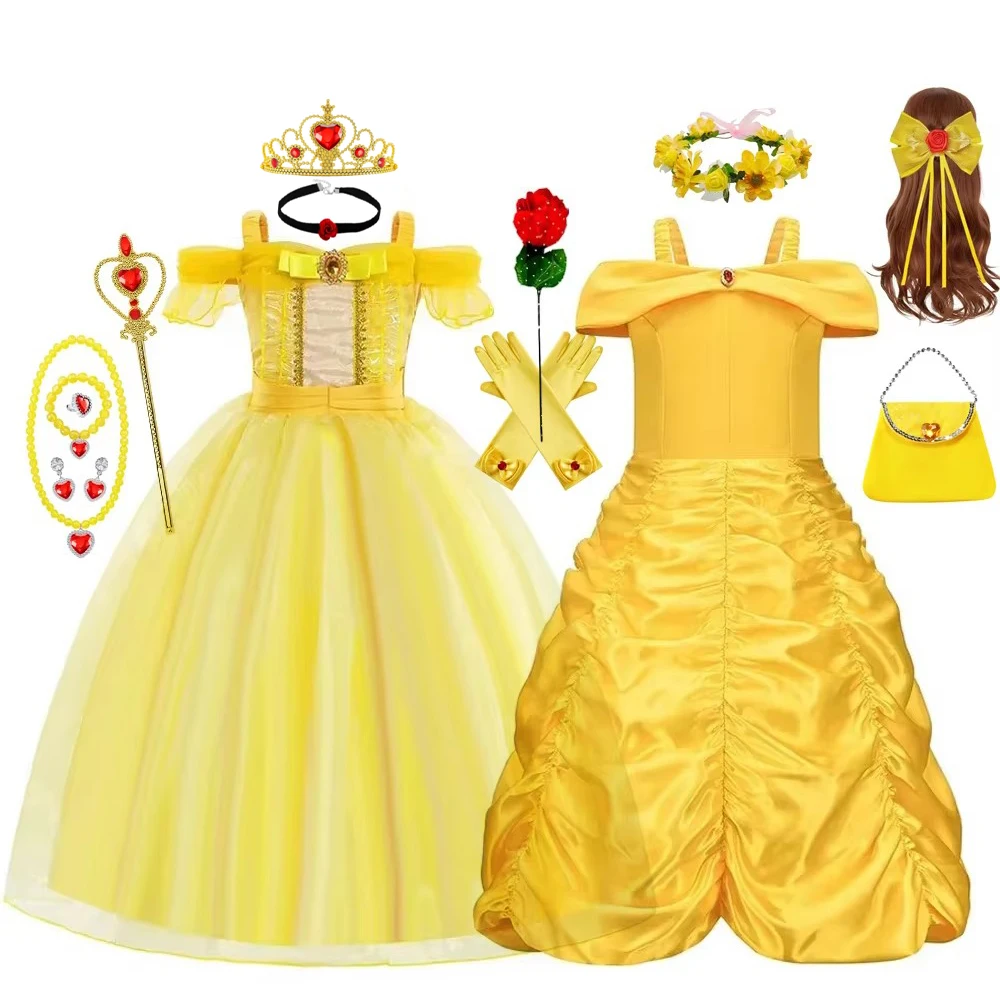 Kids Belle Costume Girl Halloween Princess Cosplay Party Dress Children Birthday Clothes Carnival Fancy Dress