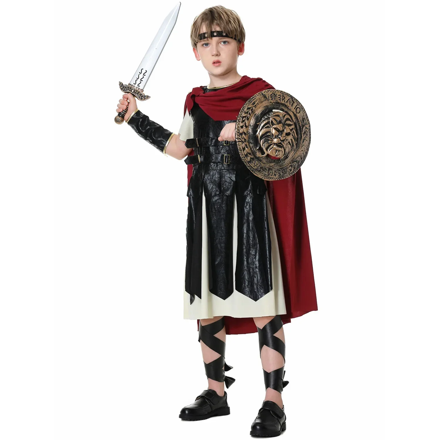 Kids Children Ancient Greece Roman Spartan Warrior Soldier Gladiator Medieval Knight Costumes for Boys Girls Halloween Party