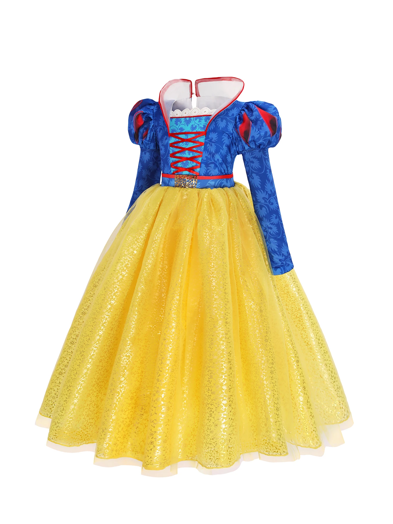 Kids Luxurious Mesh Dress Girl Snow White Long Sleeve Print Princess Dress Cosplay Carnival Masquer...