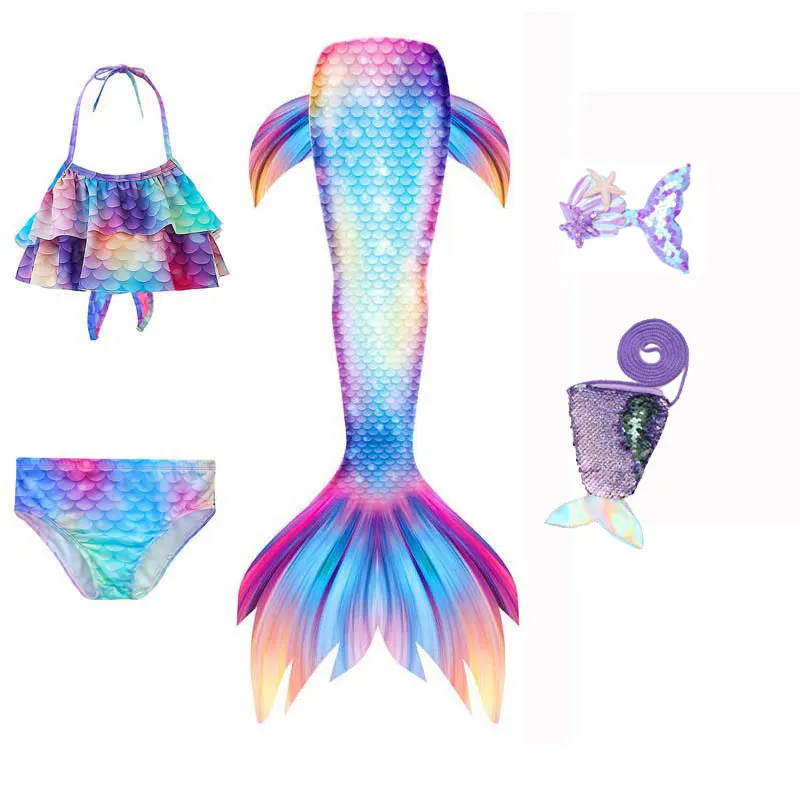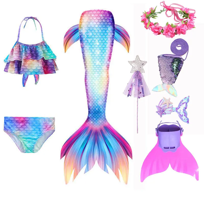 Kids Mermaid Tail For Swimming With Bikini Bathing Suit Accessories Girls Princess Mermaid Beach Wear Party Fancy Cosplay Dress