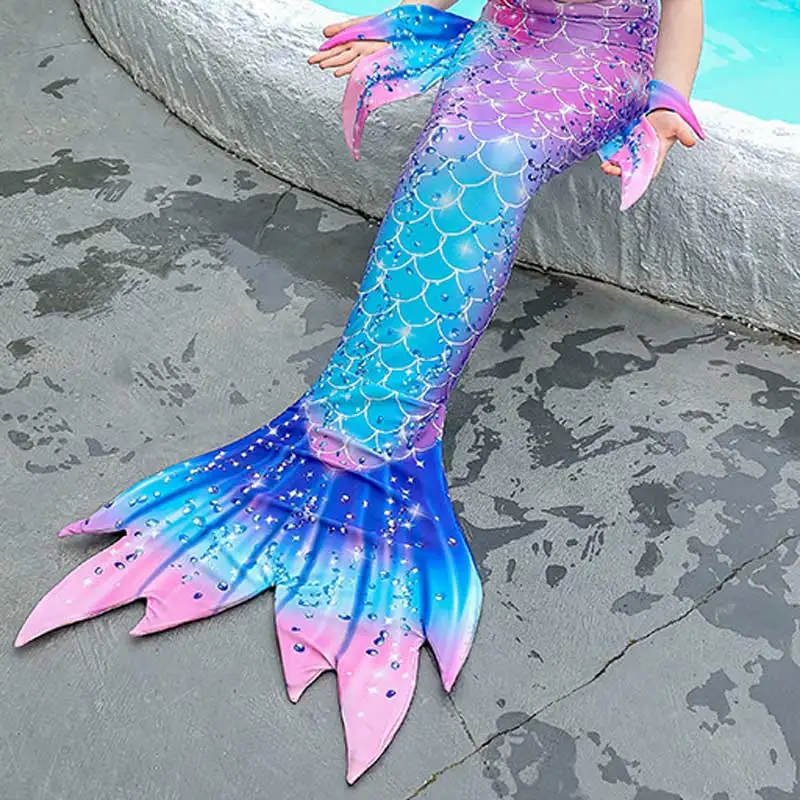 Kids Mermaid Tail For Swimming Pool Beach Swimsuit Party Cosplay Girls Mermaid Costume Flippers Sum...