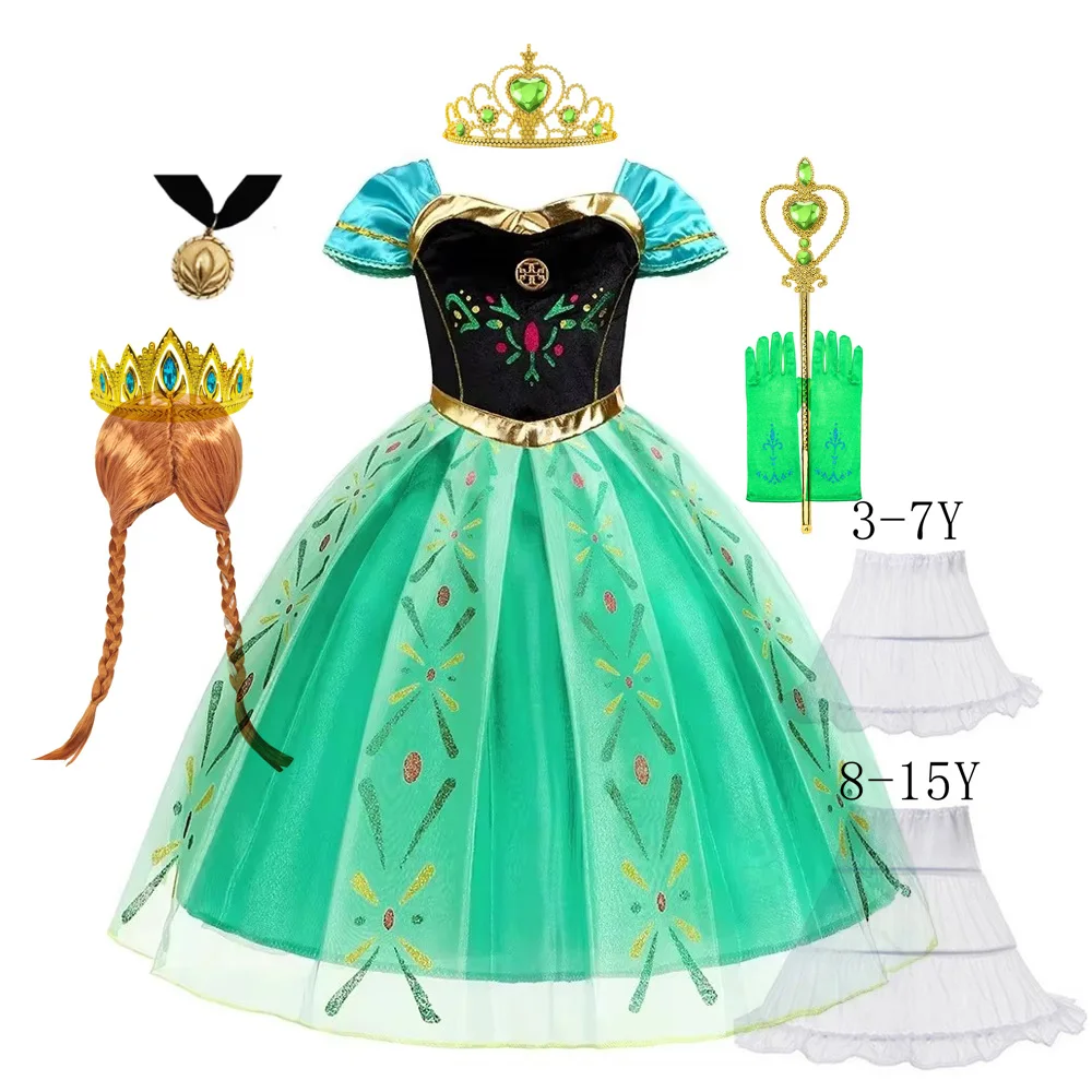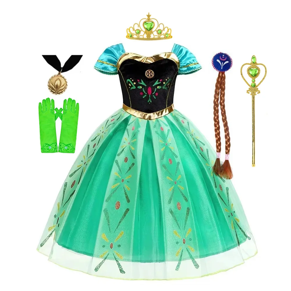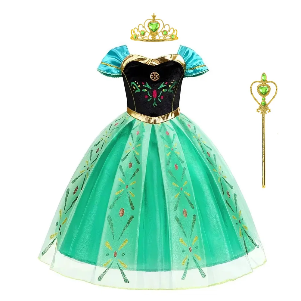 Kids Princess Costume Green Anna Dress for Girls Party Dresses Clothing Hallloween