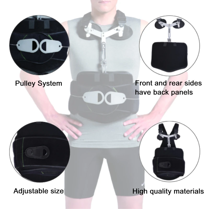 ● Pulley system – wrap around design with back, abdominal panel and front panel from stomach to clavicle