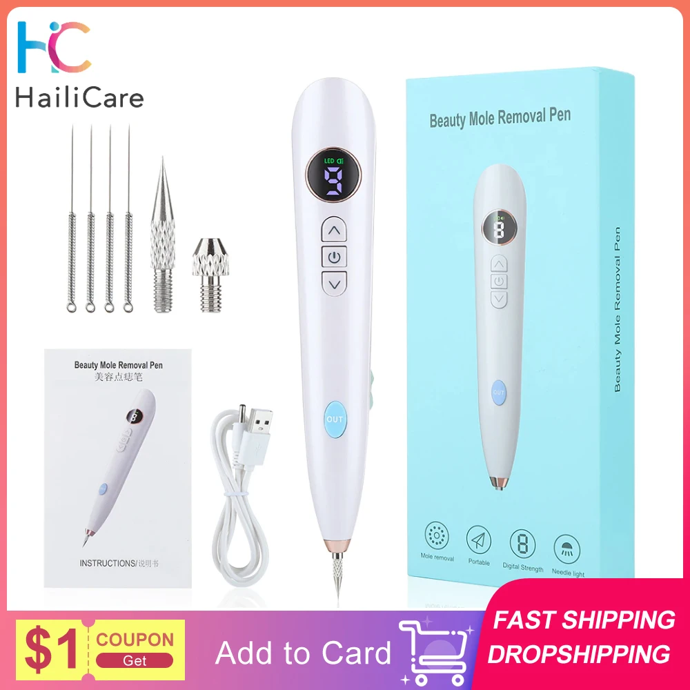 9-speed Mole Pen with LED Light Remove Freckle Black Mole Wart Granulation Tattoo Household Beauty Salon USB Charging