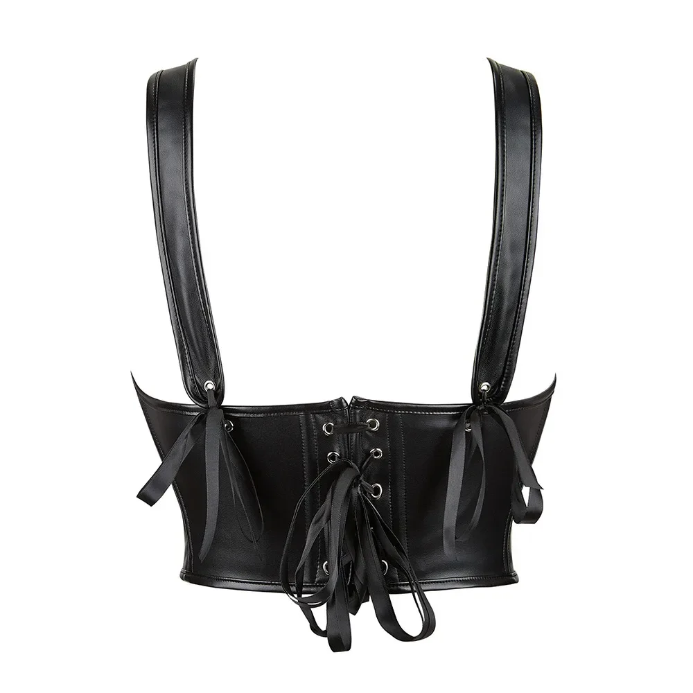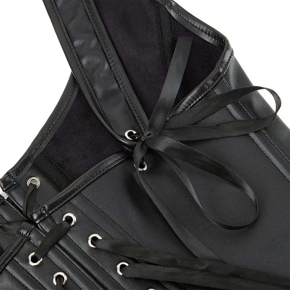 Leather Corset Lace Up Bustiers Vest with Strap Slimming Body Shaper Outwear Women’s Overbust Corsetto Korset