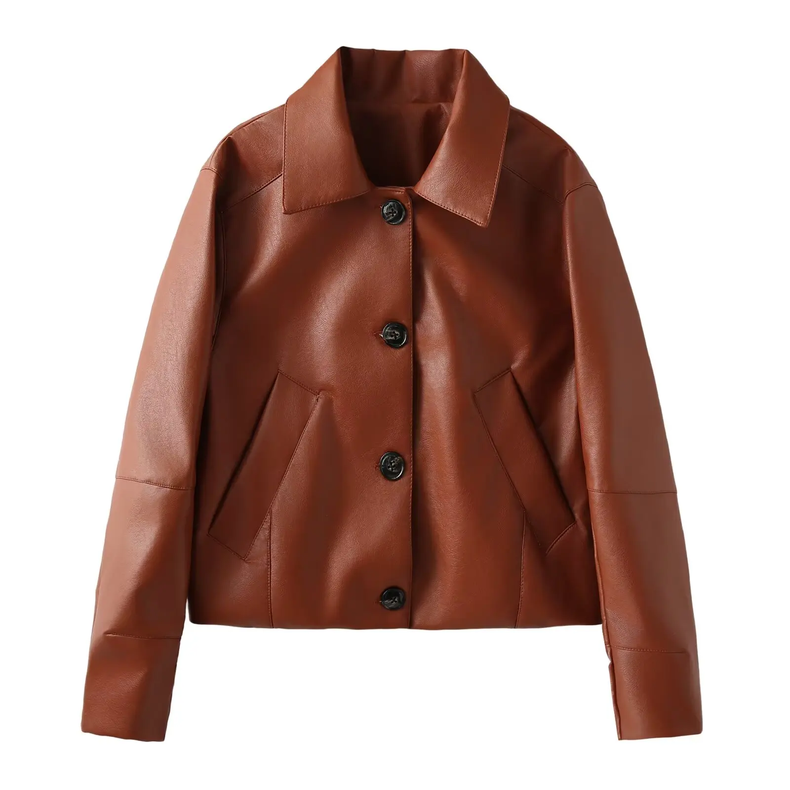 Leather Jacket Women’s Pu Coat With Button Long Sleeve Outwear Solid Long Sleeve Top Elegant Streetwear inszartrafrJaqueta Couro