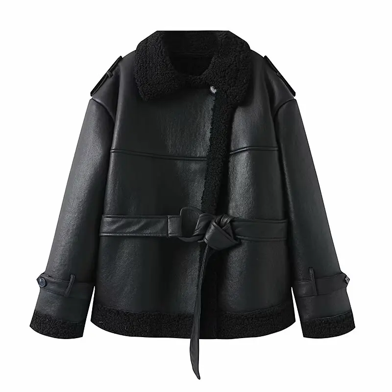 Leather Jackets Winter Women With Belt Coat Thick Warm Black Outwear Streetwear 2024 inszart Casual Loose Faux Leather Jackets