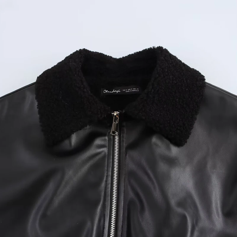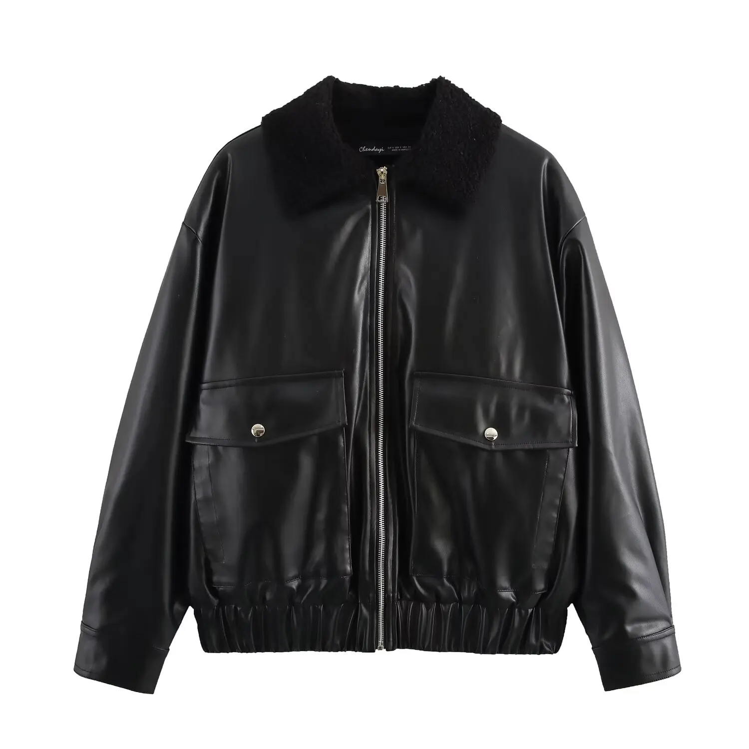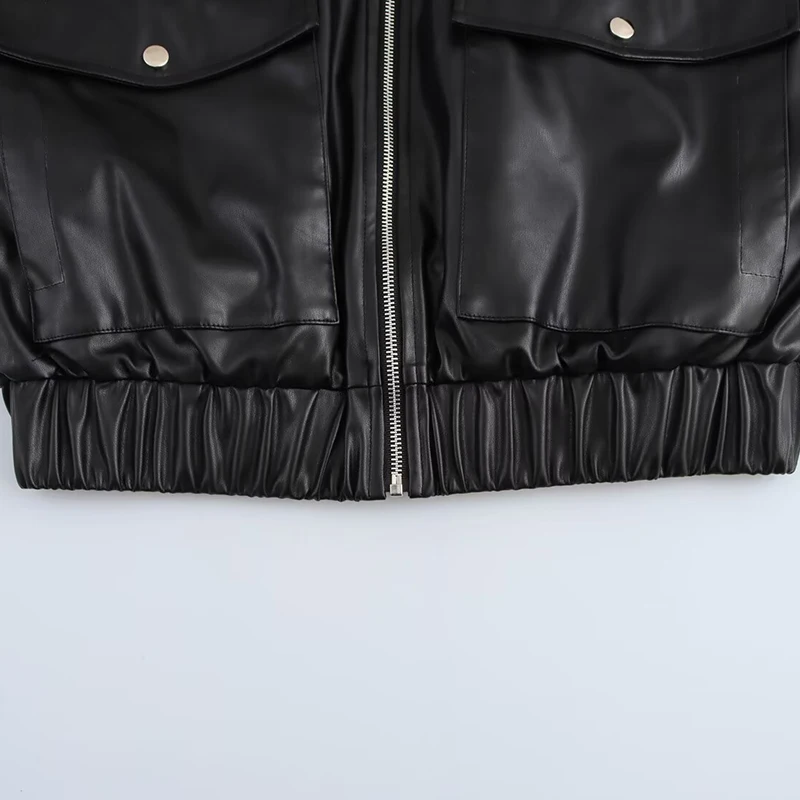 Leather Jackets Women’s Black Coat Casual Loose Long Sleeve Tops Faux Jackets 2024 inszart Streetwear With Zipper Woman Jackets