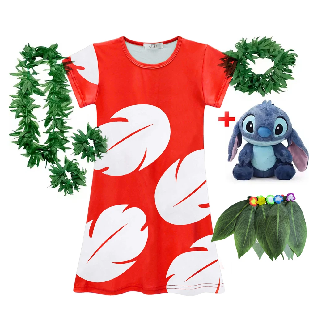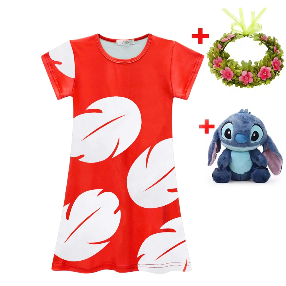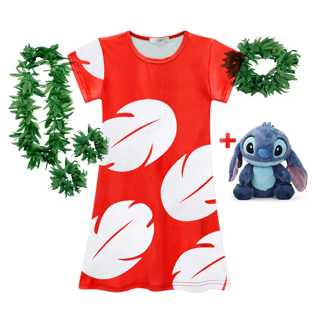 Lilo and Stitch Costume Girl Hawaii Costume Red Frock Halloween 2025 Lilo Vestido Summer Casual Robes