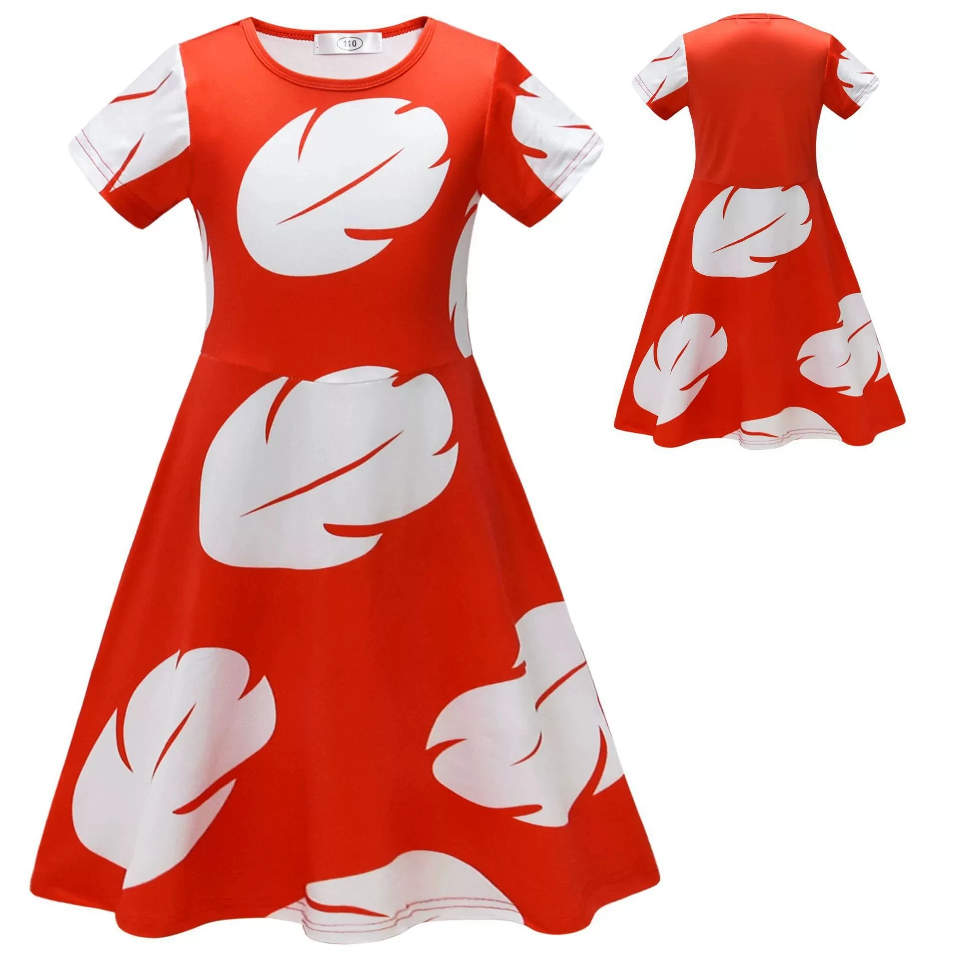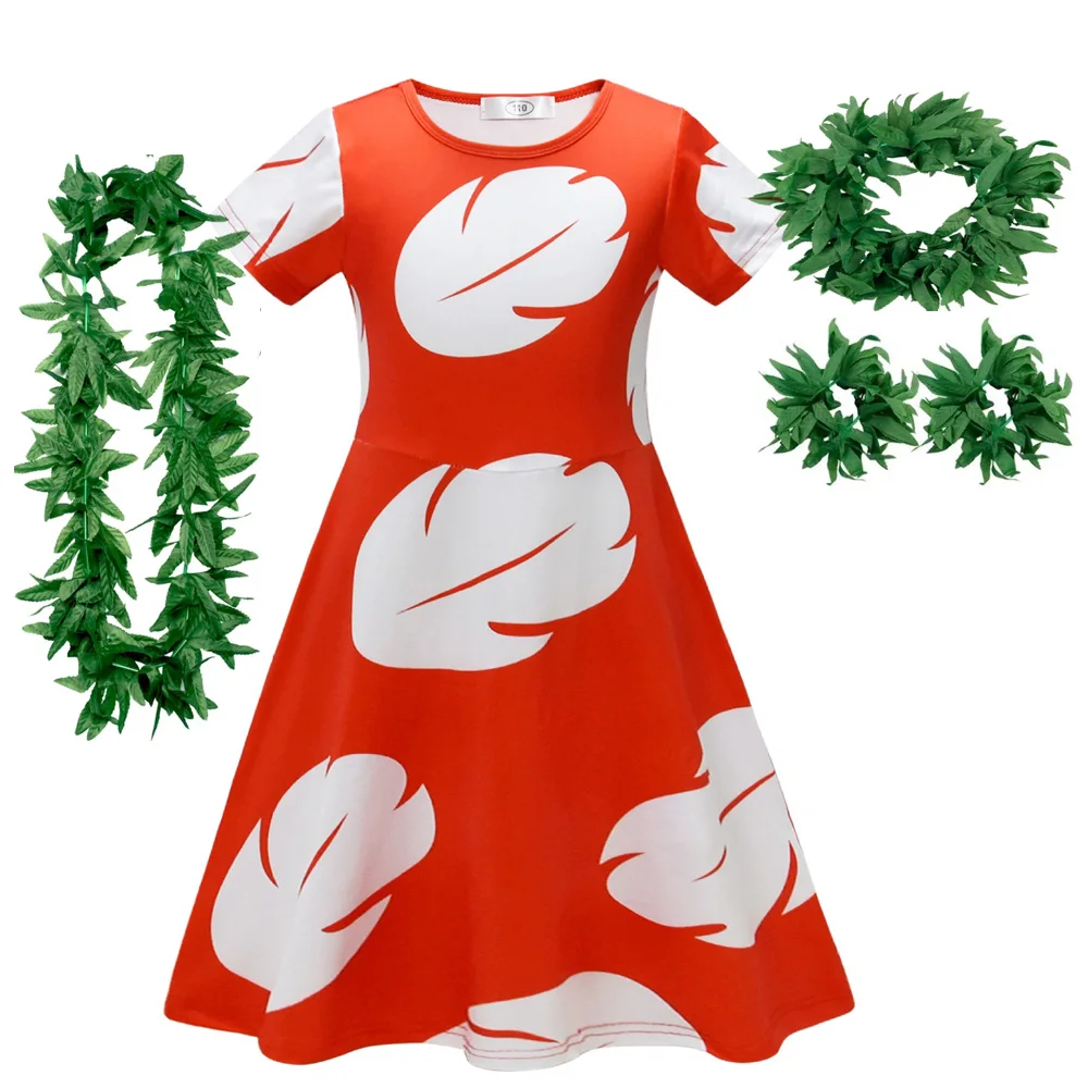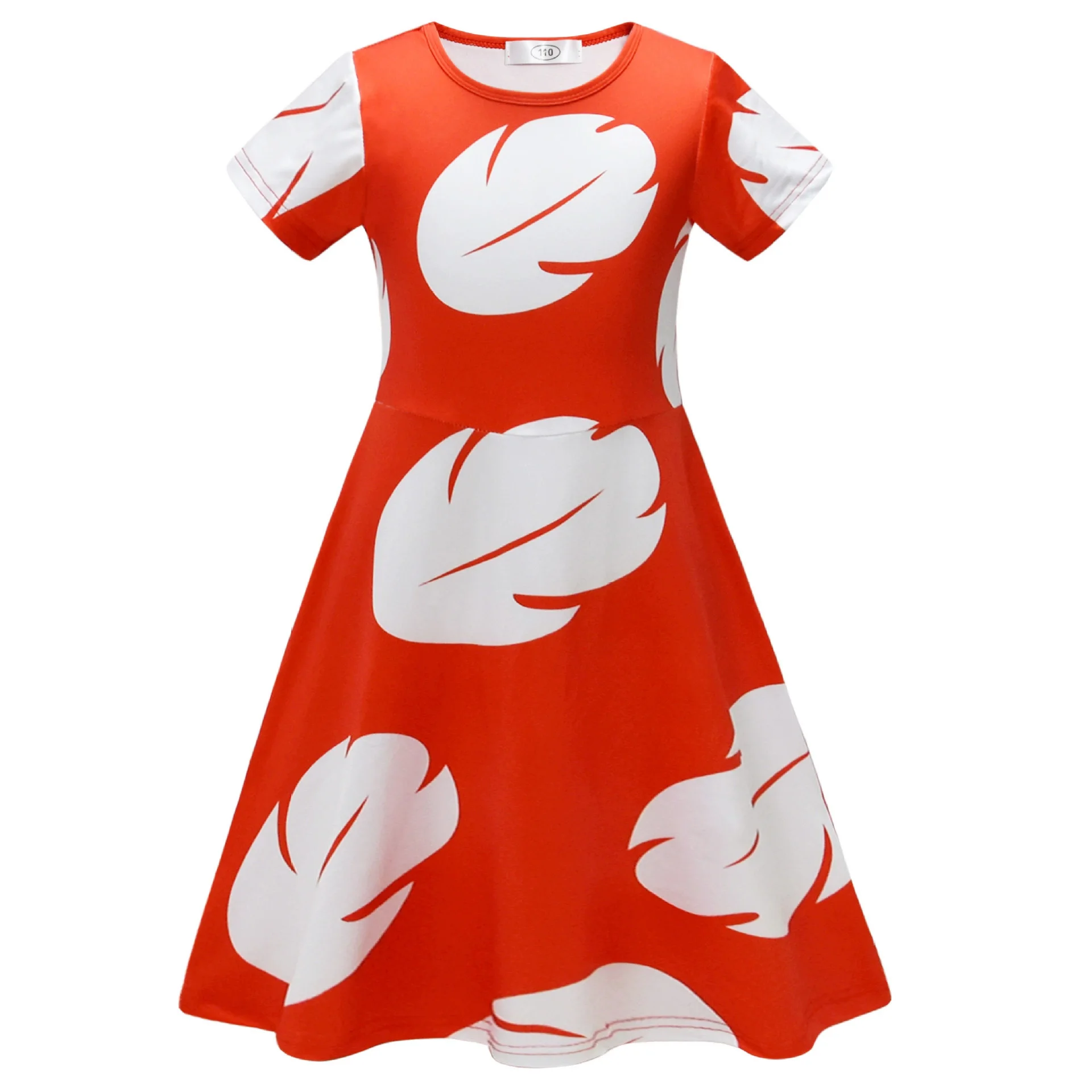 Lilo Dress Girls Hawaiian Stitch Halloween Costume Girl Clothes Red Leaves Kids Summer Dresses